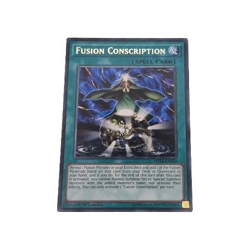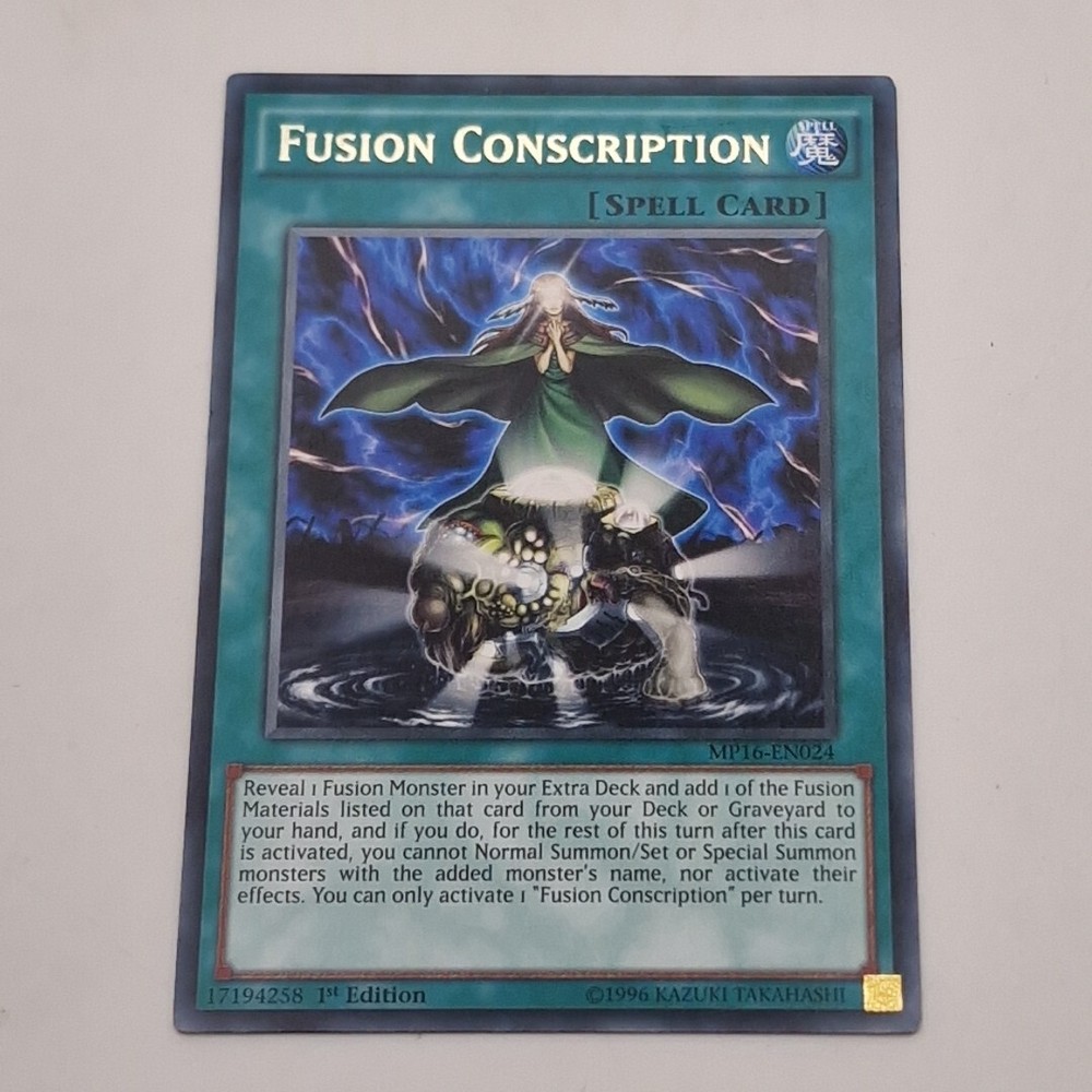 Yu-Gi-Oh! Fusion Conscription - 2015 Mega-Tins MP16-EN024 Common 1st Edition This is a used card, please look at pics for a more detailed look at condition. Please take a few minutes to have a look at our other listings, we will combine shipping on multiple purchases.