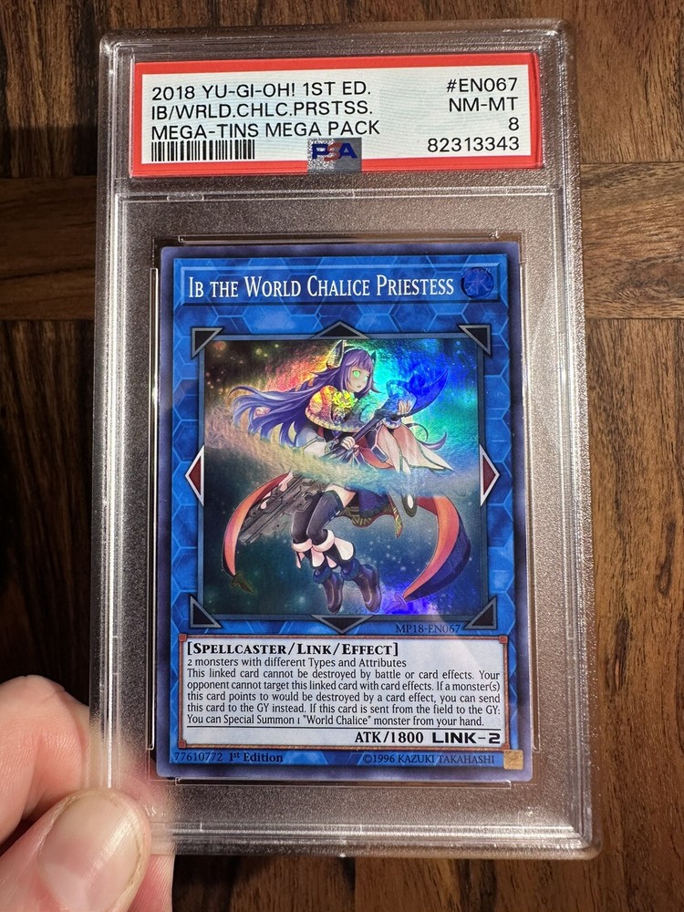 This Yu-Gi-Oh! card is a must-have for any collector or player. With its stunning super rare design and powerful attributes, the Ib the World Chalice Priestess card is sure to impress. The card is made of high-quality card stock and has a holographic finish that adds a unique touch to the design. The card is a Japanese size and features the Link-2 defense/toughness attribute, making it a formidable opponent in any Yu-Gi-Oh! game. The card is in English and has been manufactured by Konami in the United States. It is part of the 2018 Mega-Tin Mega Pack set and has the card number MP18-EN067. The card is perfect for anyone looking to add a rare and valuable card to their collection.