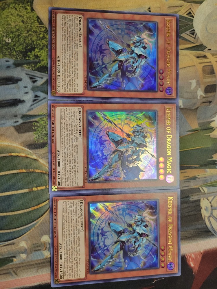 | Card Text | If this card is Normal or Special Summoned: You can discard 1 card; add 1 "Polymerization" Normal Spell or "Fusion" Normal Spell from your Deck to your hand. You can reveal 1 Fusion Monster in your Extra Deck; Special Summon 1 of the Fusion Materials whose name is specifically listed on that card from your GY in face-down Defense Position. You can only use each effect of "Keeper of Dragonic Magic" once per turn. You cannot Special Summon monsters from the Extra Deck, except Fusion Monsters, the turn you activate either of this card's effects. |