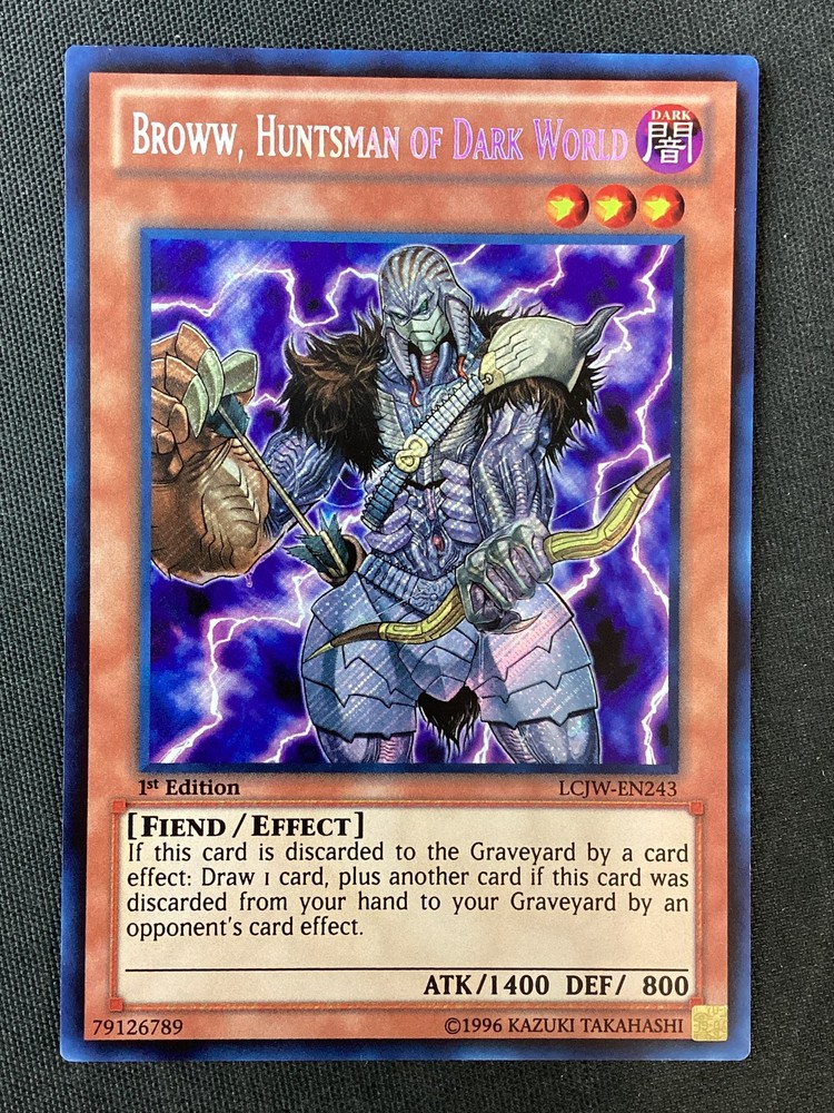 Thank you for looking! Please see scans for front and back! Check out this 2013 Yu-Gi-Oh #LCJW-EN243 Legendary Collection 4: Joey's World Secret Rare Broww, Huntsman of Dark World We do NOT use stock photos. This is the actual card you receive! U.S. Shipping: Orders under $20 ship in PWE. We charge $1.50 per listing, then .10 cents each additional after the first. Shipping is capped at $5 total LOAD UP TCG = Pokemon, Magic the Gathering, Yu-Gi-Oh! We do not ship internationally.