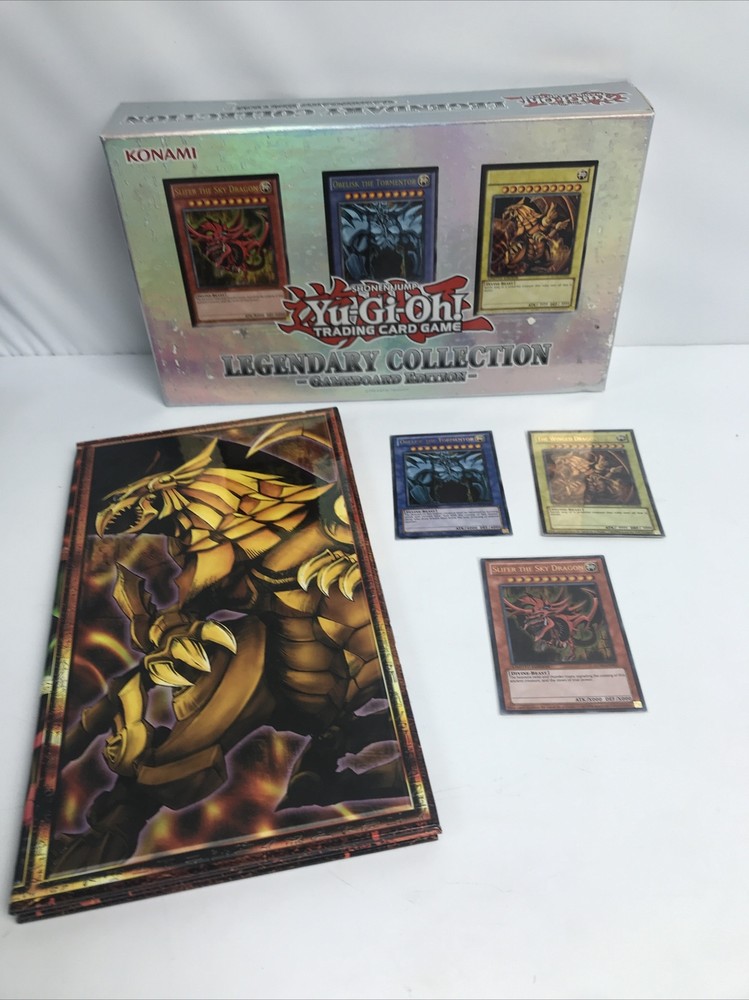 Yu-Gi-Oh Legendary Collection 1 Gameboard Edition - Box w/ Board & God Cards Condition is "Used". - Box has normal wear from shelving and storage - Game board is in good condition - Includes all three god cards, In sleeves - Good condition - No packs or other cards See pictures Fast shipping This Yu-Gi-Oh Legendary Collection 1 Gameboard Edition box includes a game board and God cards. It is perfect for fans of the Yu-Gi-Oh! TCG and is a configuration pack with promotional, full art, 1st edition, limited, and altered art features. The set includes cards from Wizards of the Coast and Konami with a recommended age range of 6-8 years and is part of the Contemporary Manufacture category in Toys & Hobbies. The game board type is a board game, and it belongs to the Yu-Gi-Oh! character family.