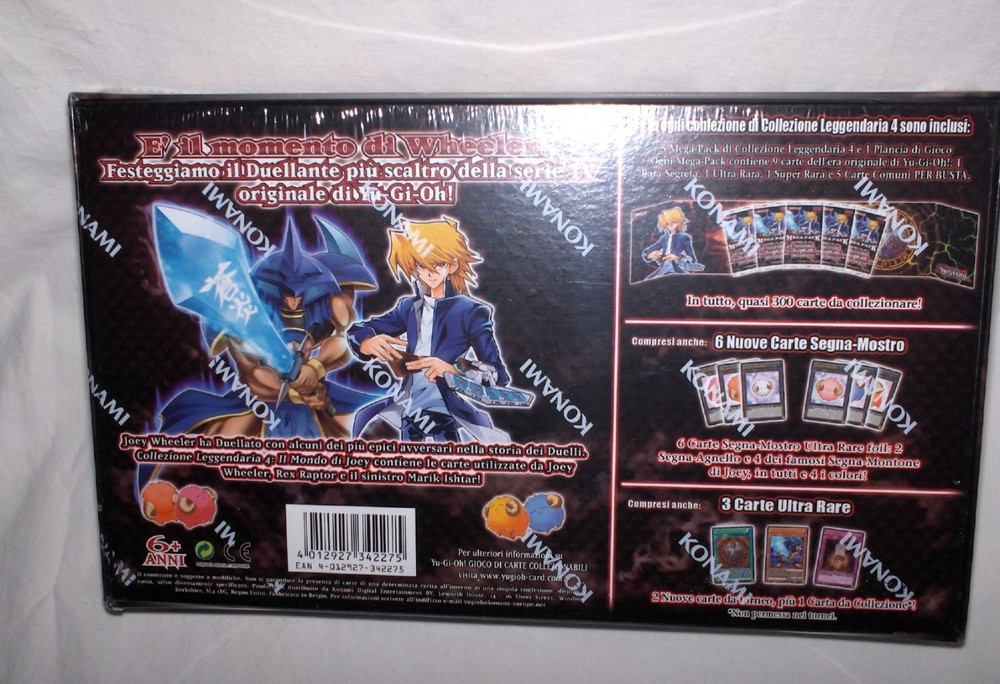 Sie kaufen eine inzwischen seltene YU-GI-OH-Legendary Collection 4 , in italienischer Sprache. Inhalt: 5 Mega-Packs Legendary Collection 4, 1 Spielbrett + 6 neue Spielmarken-Karten + 3 neue Ultra Rare Karten. Achtung: Nicht für Kinder unter drei Jahren geeignet!!!