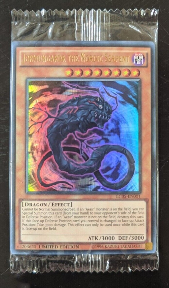 Yu-Gi-Oh Legendary Collection 5d (LC05) sealed Promo Card. Sealed promo card containing the following Jormungardr the Nordic serpent Shooting star quasar dragon Black rose dragon Stardust flash Fenrir the Nordic wolf