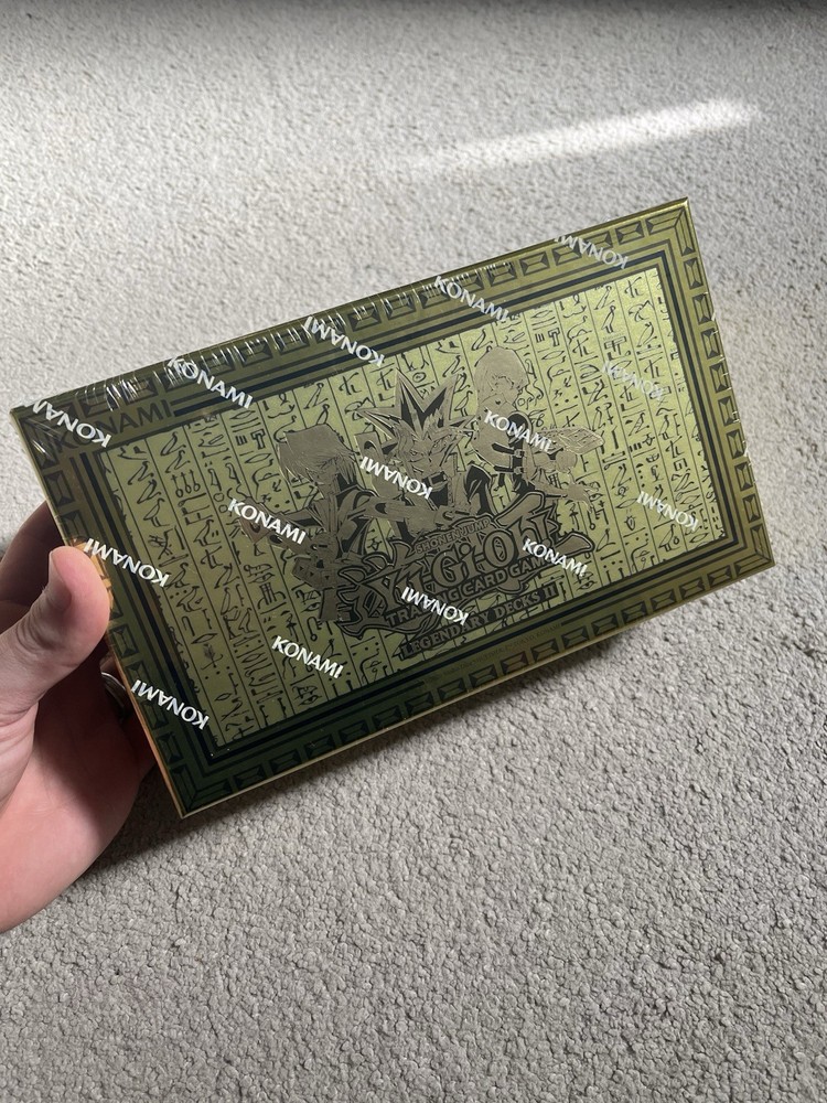 The product is the YuGiOh! Legendary Decks 2 II, featuring iconic characters like Yami Yugi, Seto Kaiba, and Joey Wheeler. This new sealed box contains classic cards such as Exodia and the Egyptian God Cards, making it a must-have for collectors and fans of the Yu-Gi-Oh! TCG. With a focus on the Legendary Decks II set, this product offers a special edition experience for fans of the game looking to expand their collection with highly sought-after cards in English language.