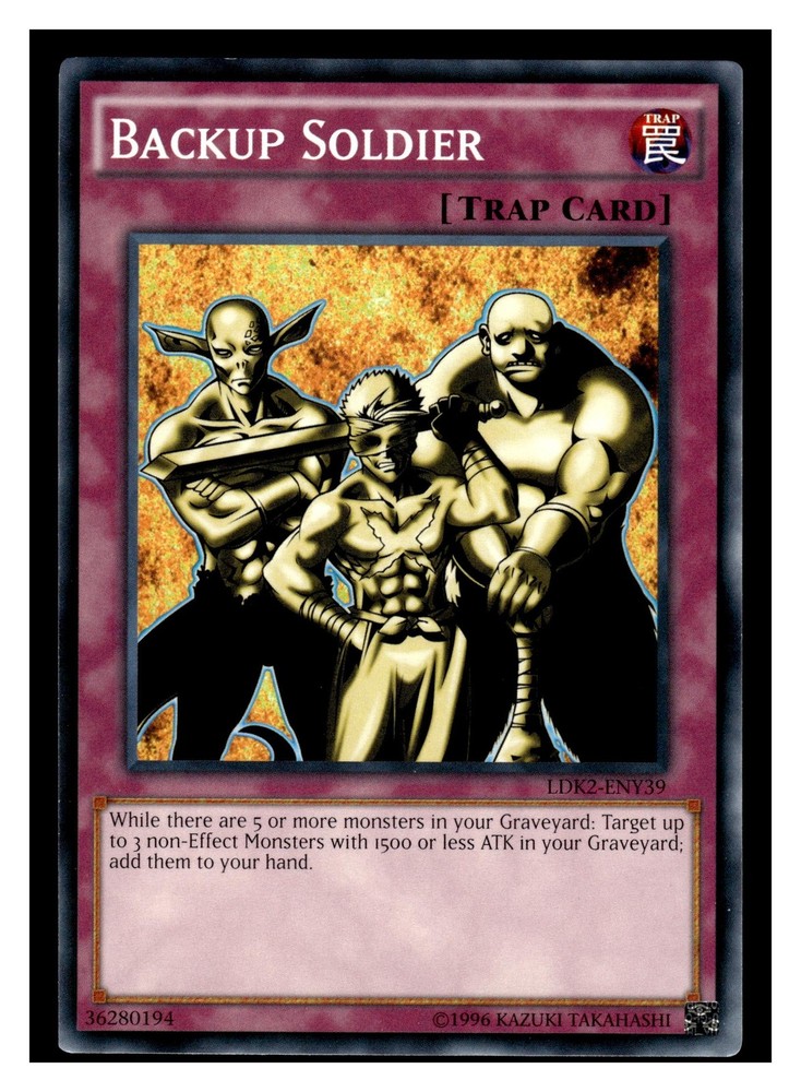 Yu-Gi-Oh! Legendary Decks II Backup Soldier #LDK2-ENY39 Be sure to read our reviews to see why we are a top seller and why serious collectors prefer our cards! All of our individual cards receive a sleeve, top loader, and team bag. Cards are shipped in a weather-resistant envelope with an extra seal to prevent USPS equipment from accidentally opening the envelope & damaging the card, ensuring your card arrives safely & quickly. Be sure to check out & follow/subscribe to our eBay store to receive special offers! We carry football, baseball, basketball, hockey, NASCAR, comics, Pokemon, Super Mario Brothers, movie cards, UFC, and more...and we are adding new cards every day!
