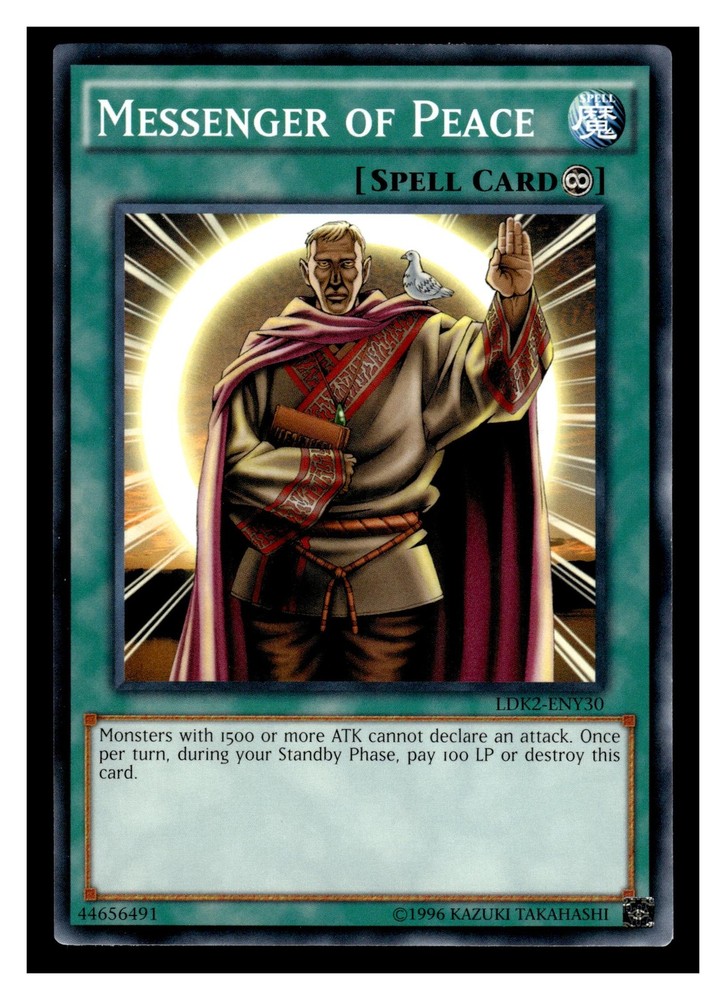 Yu-Gi-Oh! Legendary Decks II Messenger of Peace #LDK2-ENY30 Be sure to read our reviews to see why we are a top seller and why serious collectors prefer our cards! All of our individual cards receive a sleeve, top loader, and team bag. Cards are shipped in a weather-resistant envelope with an extra seal to prevent USPS equipment from accidentally opening the envelope & damaging the card, ensuring your card arrives safely & quickly. Be sure to check out & follow/subscribe to our eBay store to receive special offers! We carry football, baseball, basketball, hockey, NASCAR, comics, Pokemon, Super Mario Brothers, movie cards, UFC, and more...and we are adding new cards every day!