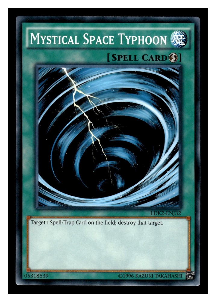 Yu-Gi-Oh! Legendary Decks II Mystical Space Typhoon #LDK2-ENJ32 Be sure to read our reviews to see why we are a top seller and why serious collectors prefer our cards! All of our individual cards receive a sleeve, top loader, and team bag. Cards are shipped in a weather-resistant envelope with an extra seal to prevent USPS equipment from accidentally opening the envelope & damaging the card, ensuring your card arrives safely & quickly. Be sure to check out & follow/subscribe to our eBay store to receive special offers! We carry football, baseball, basketball, hockey, NASCAR, comics, Pokemon, Super Mario Brothers, movie cards, UFC, and more...and we are adding new cards every day!