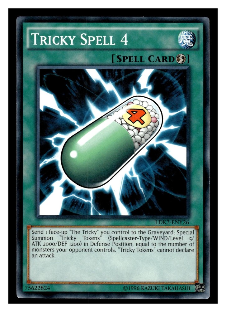 Yu-Gi-Oh! Legendary Decks II Tricky Spell 4 #LDK2-ENY26 Be sure to read our reviews to see why we are a top seller and why serious collectors prefer our cards! All of our individual cards receive a sleeve, top loader, and team bag. Cards are shipped in a weather-resistant envelope with an extra seal to prevent USPS equipment from accidentally opening the envelope & damaging the card, ensuring your card arrives safely & quickly. Be sure to check out & follow/subscribe to our eBay store to receive special offers! We carry football, baseball, basketball, hockey, NASCAR, comics, Pokemon, Super Mario Brothers, movie cards, UFC, and more...and we are adding new cards every day!