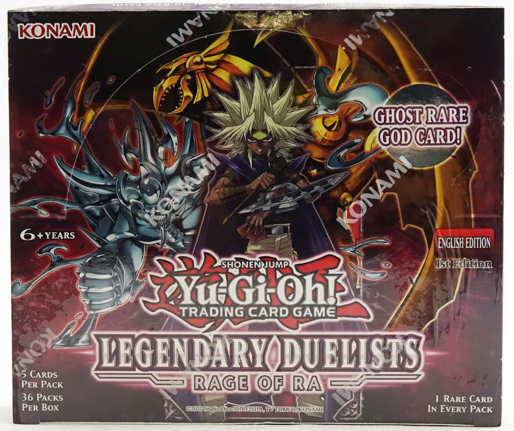Yu-Gi-Oh Legendary Duelists 7: Rage Of Ra Booster Box 1st Edition Brand New and Sealed All Yu-Gi-Oh cards I sell are genuine Konami tournament legal I have x6 1st Edition Rage of Ra Booster Boxes available if you check my other items Any questions, please do not hesitate to ask