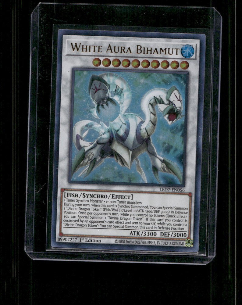 This is a nice example of a Legendary Duelists: Rage of Ra #LED7-EN056 White Aura Bihamut Other important information about this card: Ultra Rare In White Aura Bihamut played for the . Please check out our other listings for more great cards.