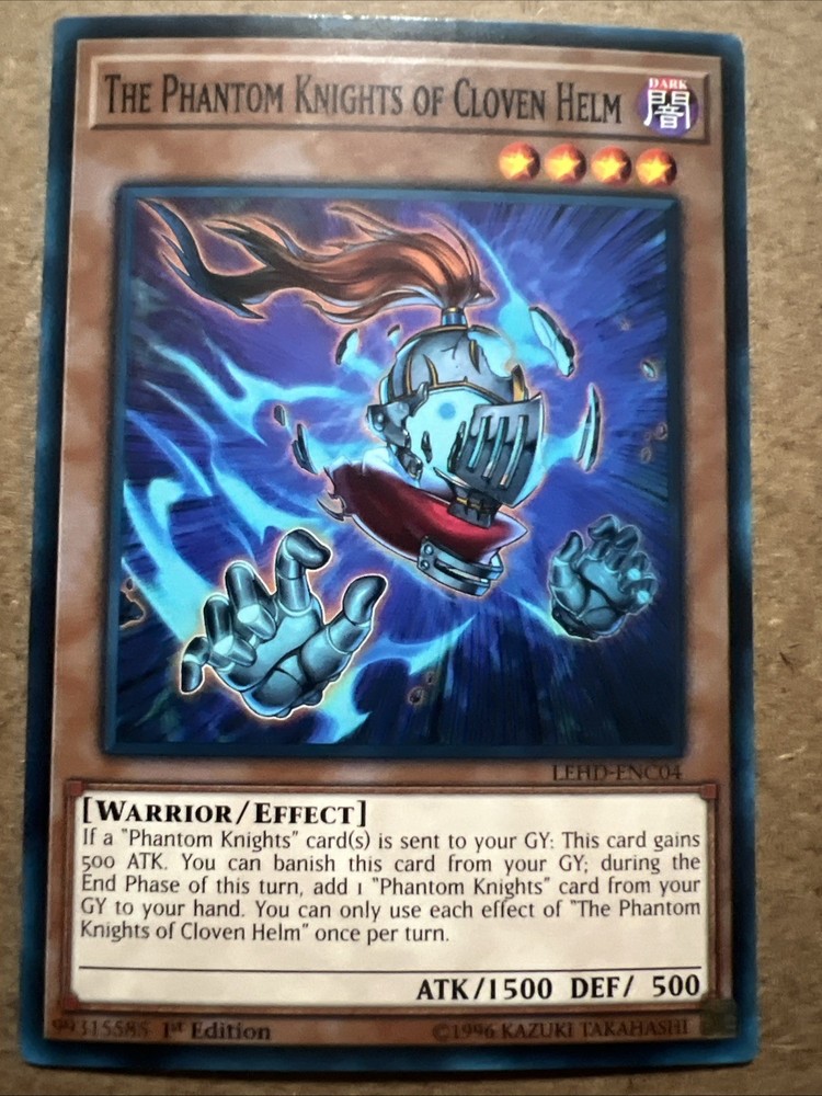 The YuGiOh Legendary Hero Decks - The Phantom Knights Of Cloven Helm LEHD-ENC04 is a rare and collectible card from the Yu-Gi-Oh! TCG series. This 1st Edition card features the character The Phantom Knights of Cloven Helm, a Warrior, Knight, and Hero-type creature. Manufactured by Konami in the United States, this English-language card is made of card stock with a standard size and a dark attribute. With a cost of $1.75, this card is near mint or better condition and comes ungraded. Perfect for collectors and players alike, this card is a valuable addition to any Yu-Gi-Oh! collection.