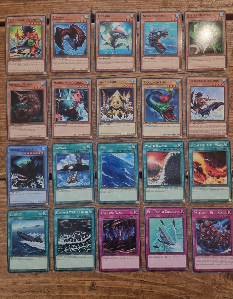 Yu-Gi-Oh! Mako Tsunami’s Legendary Fisherman 20 card speed duel ready to play deck from the Streets of Battle City SBC1. All cards are in near mint condition. Buy any 2 of my YuGiOh decks and get a free 2-player play mat. Ready to play speed Duel deck featuring the following cards: 1x The Legendary Fisherman 1x Airorca 1x Flyfang 1x Needle Sunfish 1x Oyster Meister 1x Piercing Moray 1x Maiden of the Aqua 1x Fiend Kraken 1x 7 Colored Fish 1x The Legendary Fisherman 11 1x Fortress Whale 1x Salvage 1x Umi 1x Water Hazard 1x Big Wave Small Wave 1x Fortress Whale’s Oath 1x Tornado Wall 1x Fish Depth Charge 1x Paleozoic Eldonia All cards are Near Mint as pictured. Securely packaged and fast dispatch.