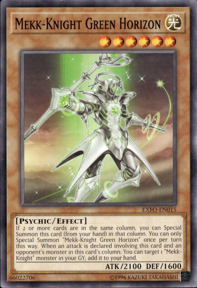 Just got this Mekk-Knight Green Horizon card and it’s in perfect condition—exactly as shown in the scans! The seller packed it securely in a sleeve and top loader, plus the tracked shipping was a nice bonus. Super happy with the purchase, and the card looks amazing in my deck. Highly recommend this seller for Yu-Gi-Oh! cards!