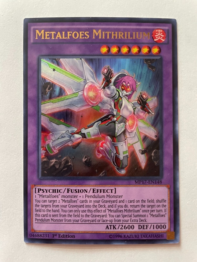 What you will receive: 1x Metalfoes Mithrilium MP17-EN148 Ultra Rare 1st Ed Please see photos for card condition; what you see is what you get. Card is near mint. How will it be shipped: Card will be shipped in a PWE. Card will be in a sleeve and toploader Shipping via ebay standard envelope Tracking included Returns No returns are accepted. You will receive the same card in the photos.