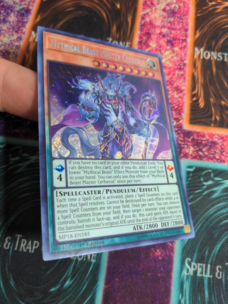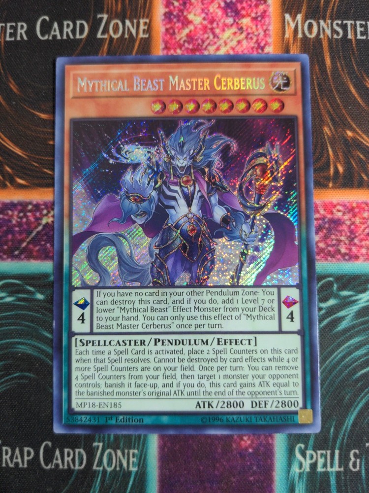 Yu-Gi-Oh! Mythical Beast Master Cerberus MP18-EN185 1st Edition Secret Rare NM.