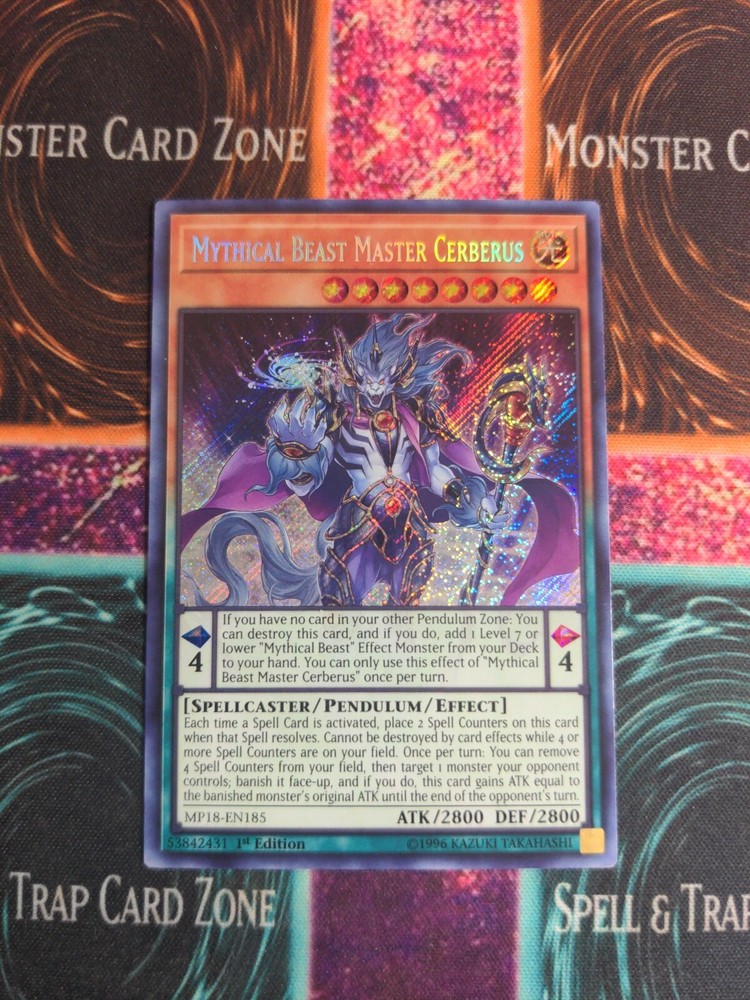 Yu-Gi-Oh! Mythical Beast Master Cerberus MP18-EN185 1st Edition Secret Rare NM.