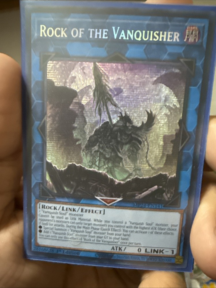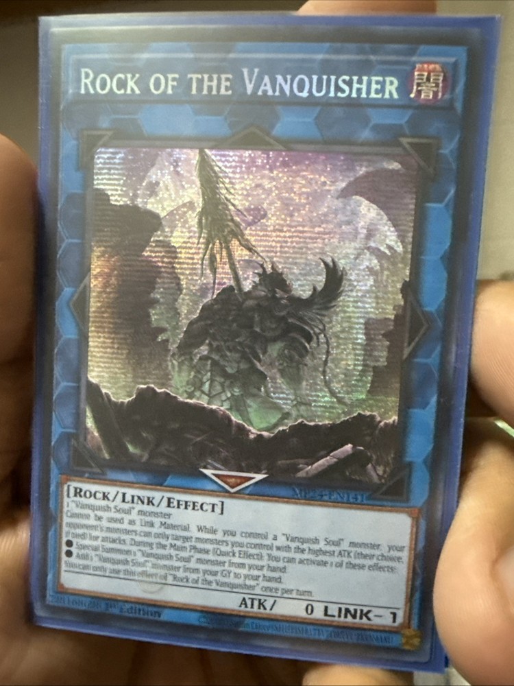 Elevate your Yu-Gi-Oh! TCG collection with the Prismatic Secret Rare Rock Of The Vanquisher card, from the Mega Pack 2024 Tin. This striking card, numbered MP24-EN141, features a holographic finish that captures the eye and stands out amongst other cards, making it a centerpiece for any collector or duelist. The card is an Effect type with a unique black attribute, embodying the rock creature/monster type. It's printed in English and boasts the 1st Edition mark, signifying its value as a collector's item. Manufactured by Konami, this card is a must-have for players and collectors alike, looking to enhance their game or showcase a piece of Yu-Gi-Oh! artistry.