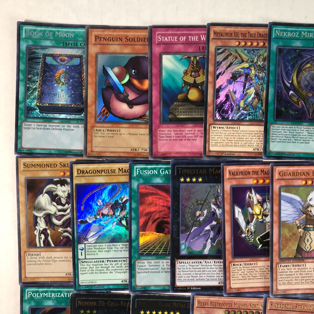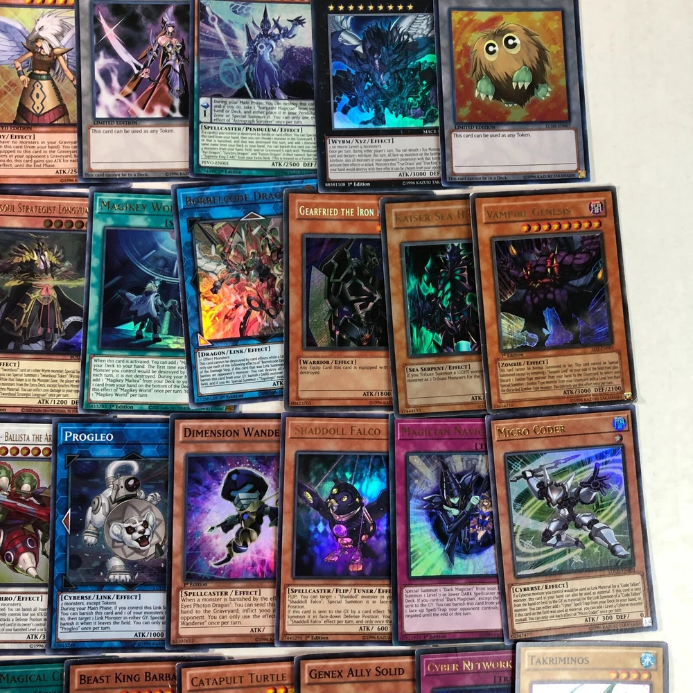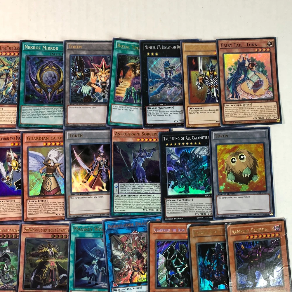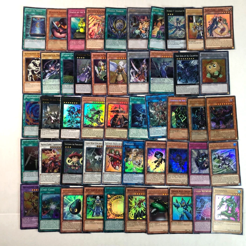 Lot of 50 Yu-Gi-Oh! RARE cards. Includes mainly Super, Secret, and Ultra rare cards. Many are 1st Editions. Condition is a mix of light play up to heavy play. There are some rougher cards in the bunch so please see pictures. Cards may have edge and corner creases. Shipped out fast within one business day.