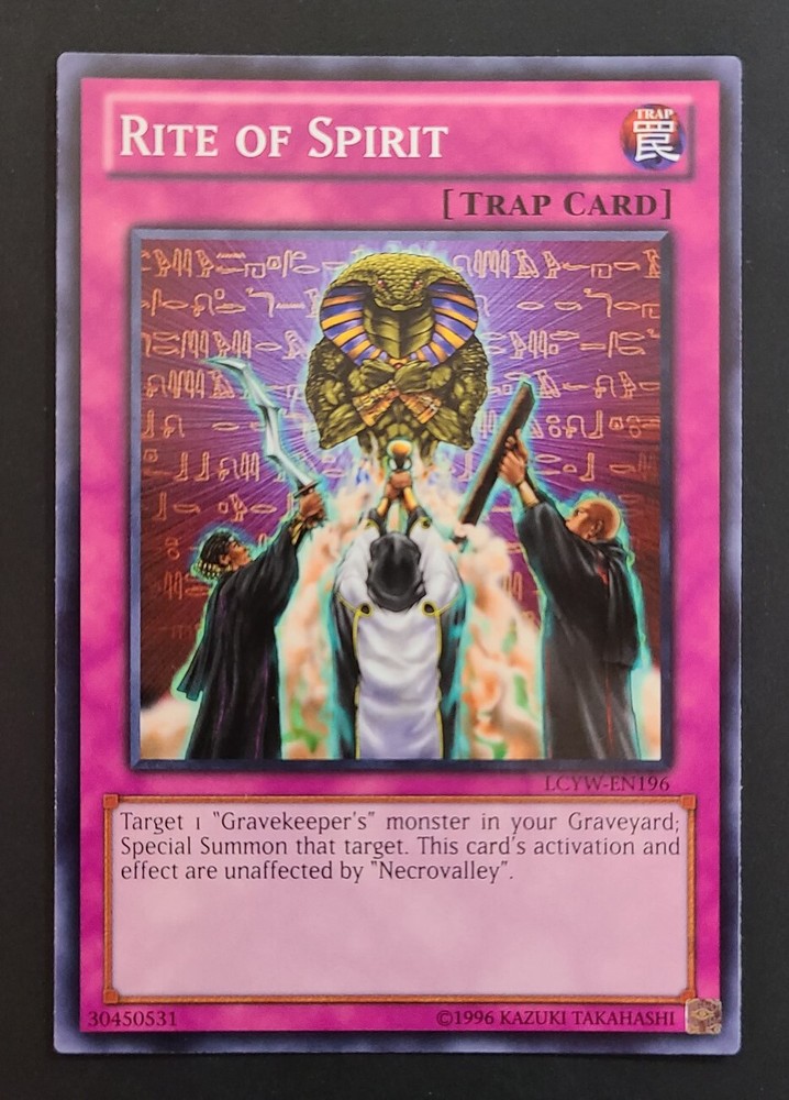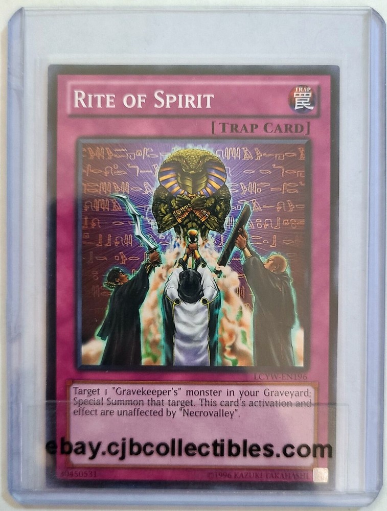 Yu-Gi-Oh! RITE OF SPIRIT LCYW-EN196 Legendary Collection 3: Yugi's World 🍒 Yu-Gi-Oh! RITE OF SPIRIT LCYW-EN196 Legendary Collection 3: Yugi's World Lightly Played: (L@@K PLEASE.) What you read & see is what you get. ***You get one card. Magnetic card holder / case not included.*** May have minor wear, scratches, imperfections, etc but overall good condition. Please examine the pictures of the actual card in this listing before purchase. If you have any questions or concerns please message me. Thank you. Important buyer options & information below. Check out my eBay store: ebay.cjbcollectibles.com for more Yu-Gi-Oh! Pokémon, Magic The Gathering, Comic Books and other collectible items. CjB Collectibles (brattyangel9494) with legendary customer service, real pictures, fast and professional shipping! Why settle for anything less? You deserve better! Our ebay store at: ebay.cjbcollectibles.com We normally try to respond to questions promptly however please allow us up to 24 hours for a response. Response time may be delayed on weekends and holidays. Thank you for your patience. eBay.CjBCollectibles.com Shipping Returns Item assesment & conditions Questions & Feedback CJB Collectibles offers Domestic and International shipping. Worldwide Shipping. Domestic (USA) customers have 2 choices of shipping at checkout: At checkout default is FREE / ECONOMY SHIPPING, You get: Minimal protection with a standard envelope / economy mailer. Tracking may not be available. OR ***** (We Recommend) ***** $4.99 Standard / First Class shipping. You get: Premium packaging and First Class shipping. Your items will be in a secure bubble mailer or box. You will receive a tracking number. We give our customers options therefore we will not be held liable for unreliable / no tracking or damage to merchandise during delivery. We ship same business day or next business day. We hope you will love your purchase at CjB Collectibles, however if you need to return it, we have a 30 day return policy. All items must be returned in the same way as it was sent, including original sleeves, top loaders, bags, backing board, etc. If not returned exactly as it was sent then there may be fees imposed and will be reported to eBay. If you have any questions or concerns please use the "contact us" . We go above and beyond for our customers. Before contacting eBay, your bank card or payment provider, or leaving Neutral or Negative feedback please "contact us" first. Mistakes may happen but we will work with you to give you a pleasant and positive experience at CjB Collectibles. We are not professional card graders however we have many years of dealing with Graded & Non-Graded, Sports & Non-Sports cards and your opinion on condition may differ from ours. It is recommended and expected for the buyer to examine the pictures carefully to avoid condition conflicts. We are very transparent and use a high power camera with different background contrasts in our live pictures so that you may see all or most details with ease. The first 5 pictures will be flat images and if there is a hard to see detail or defect it will be shot on an angle after the 5th image for clarity. We want you to know what you are buying, yes it is important to us. We do not use stock images. If there is a condition concern or any question please be courteous and message me rather than using eBay as your first option for a resolution and I will work with you to answer or resolve it immediately. There is no need to open any claim and bring a 3rd person (eBay) when we can resolve any problem with ease. I usually respond quickly but please allow me up to 24 hours to respond as I strive for excellent customer service with a smile. Please before contacting eBay, payment provider, or leaving negative or neutral feedback, please contact me / message me with your concerns or questions and I will address it as soon as possible to resolve any issues. I usually respond promptly but please allow me up to 24 hours to respond to your concerns. I strive for excellence in customer service and your thoughts are important. Thank you. I use an automated feedback program that is set to where as soon as the buyer leaves a positive feedback the program automatically leaves you a positive feedback as well. If you do not leave feedback than you will not receive feedback. If you want to opt out for a feedback reminder please message me. If you leave feedback and you did not receive feedback than please contact me so I can manually enter the feedback for you. There will be an automated feedback reminder that after a few days if you did not leave feedback the program will send you a reminder. There is no obligation to leave feedback however, I am hoping that if I provide you with an outstanding product and service that you would be so kind and let others know via "leave feedback" . ABOUT US CjB Collectibles sells and buys all sorts of TCG's like Pokémon & Yu-Gi-Oh!, anime, comic books, toys, collectibles & more! 😁 You can enter directly from any browser by copy and paste our store link: www.ebay.cjbcollectibles.com We are based in New Jersey and have been collecting Sports and Non-Sport cards, comic books and toys since as far back as the late 70's. We run the store with family and we try to keep prices very fair and reasonable so that we can all have fun collecting and playing TCG's. I want everyone to have fun and go "gotta catch em' all" eBay listing template by 3D sellers.com - Try for Free!