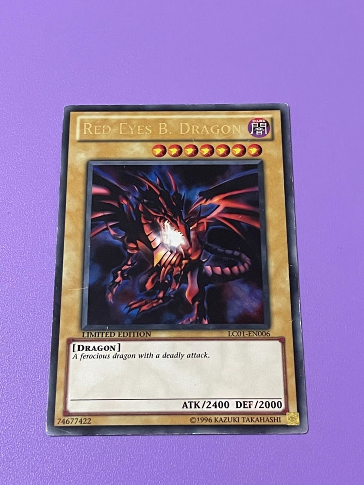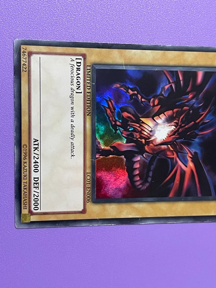 Hello and welcome to my auction. Yu-Gi-Oh! Red-Eyes Black Dragon LC01-EN006 Ultra Rare Limited Edition card. The card is in moderate condition with some heavy damage. This card comes in a sleeve and protective Top Loader / case. Please check out the photos for detail of condition and any imperfections. Please check out my other YuGiOh! Cards and Collectable items as more are added regularly. All item/s are sold as seen, What you see is what you get I offer postage discounts on multiple wins If you have any questions please feel free to contact me and i will respond within 24 hours Payment within 3 days of auction ending please Items will usually be dispatched within 3 working days after receiving cleared payment. Many thanks and good luck