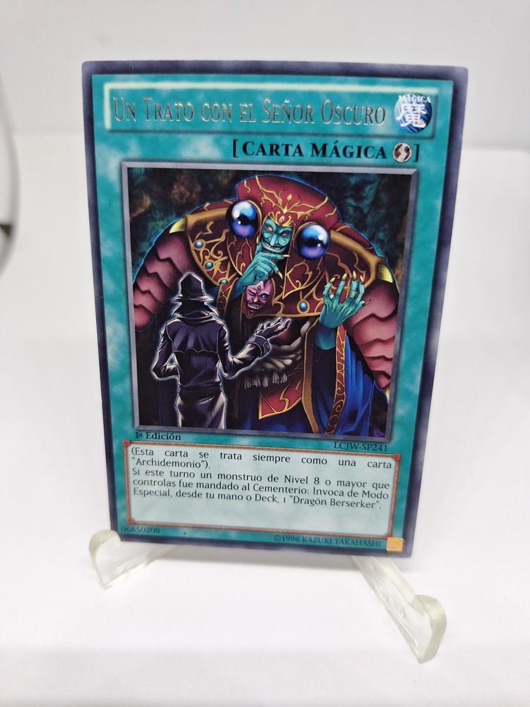 This Yu-Gi-Oh! card is a must-have for any collector or player. The A Deal with Dark Ruler card is a rare and highly sought-after piece. It features the attribute of darkness and is a standard size card made of high-quality card stock. The card is from the Legendary Collection set and was manufactured by Konami in 2013. *****EL TRATO CON EL SENOR OSCURO****ORIGINAL The card number is LCJW-SP241 and it is a 1st edition. The card is a spell card and is illustrated by Kazuki Takahashi. It is perfect for players and collectors alike, and is sure to add a touch of rarity and uniqueness to any collection. The card is in Spanish and is suitable for ages 6 and up. Don't miss out on the chance to own this rare and highly coveted piece!