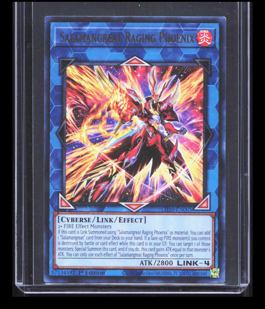 This is a nice example of a Legendary Duelists: Soulburning Volcano #LD10-EN005 Salamangreat Raging Phoenix . I am not a professional grader, raw card condition is subjective, please refer to the high definition scans or raw cards to determine the condition of the card All cards are in the EX-NM range unless otherwise stated Chrome cards (Topps Chrome/Prizm/Optic/Mosaic) might have minor light surface scratches which is typical with these types of cards. Any major deep scratches will be stated if any are present Coupons and discounts don't apply for accepted offers. Please check out our other listings for more great cards, and be sure to save me as a seller as I plan on listing 10's of thousands of cards over the coming weeks/months.