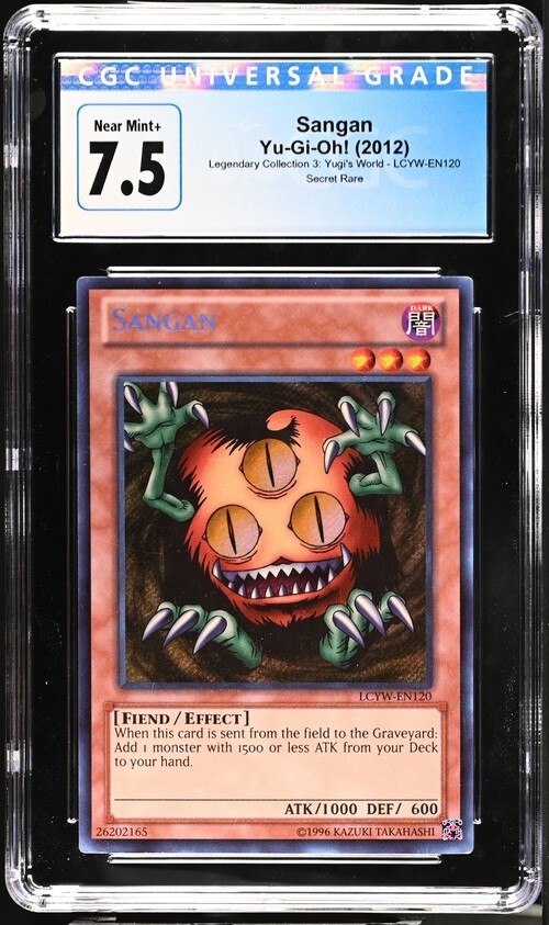 Elevate your Yu-Gi-Oh! TCG collection with the formidable Sangan card from the Legendary Collection 3: Yugi's World. As a Secret Rare card with the unique attribute of "Dark," it stands out both visually and in gameplay. Sangan, with card number LCYW-EN120, features an attack power of 1000 and a defense toughness of 600, making it a significant addition to any deck. This Effect-type Fiend monster is a must-have for enthusiasts seeking to enhance their game experience. Produced by Konami and presented in English, this card is a testament to the Unlimited feature, ensuring that it remains a versatile and powerful asset in your strategic arsenal.