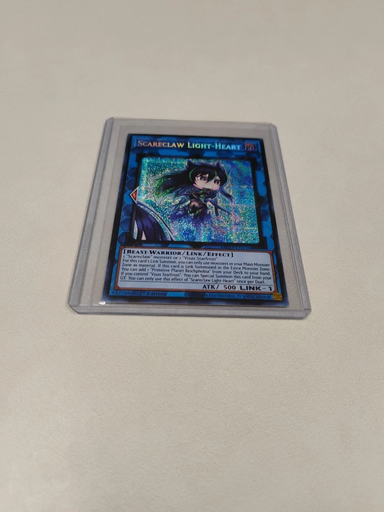 Elevate your Yu-Gi-Oh! TCG collection with the Scareclaw Light-Heart card, a standout from the 2023 Mega Tins set. This Prismatic Secret Rare card showcases an impressive foil finish that captures the eye and adds a luxurious touch to your deck or display. With its unique Dark attribute and beast-warrior creature type, it brings a formidable edge to your game. Scareclaw Light-Heart comes as a 1st Edition, ensuring you're getting a piece of card history. The card is non-modified and preserves the integrity of its original design by Konami. Its Effect and Link card types mean it can be a game-changer, providing both strategic play options and a captivating collectible for fans of the Yu-Gi-Oh! universe. This card went straight from pack to penny sleeve and top loader.