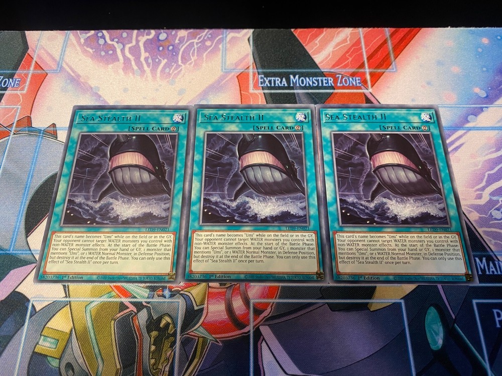 En venta 3 copias de la carta llamada Sea Stealth II, en idioma ingles, de rareza común.