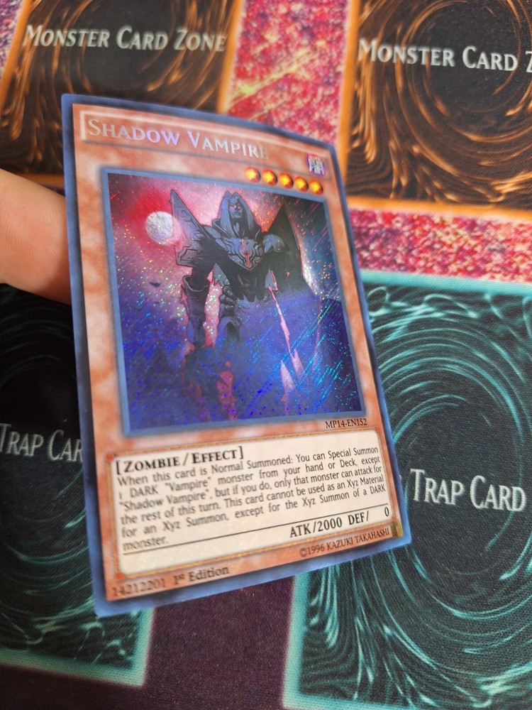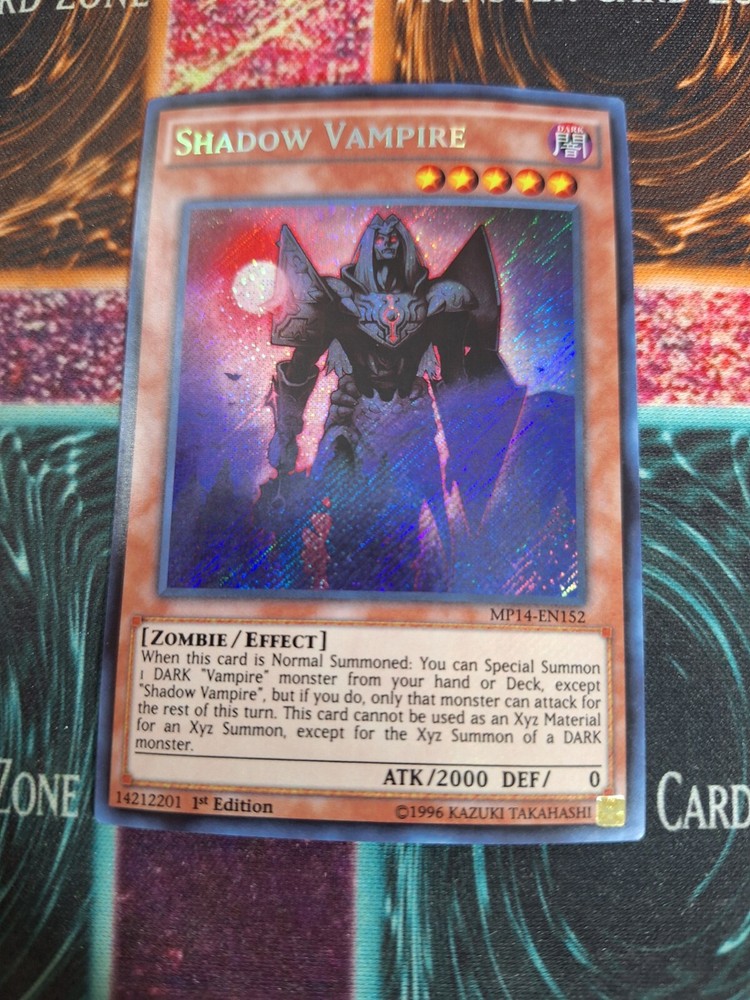 Yu-Gi-Oh! Shadow Vampire MP14-EN152 Secret Rare 1st Edition Lightly Played. Has some warping, can be flattened....