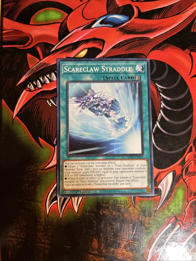 YuGiOh Spell Card Scareclaw Straddle MP23-EN139 1st Edition, Common/Short Print. The card is pack fresh, Near Mint. The card is from the Yu-Gi-Oh!: 25th Anniversary Tin: Dueling Heroes Mega Pack Set. Card will ship in a white envelope, in a penny sleeve and top loader. We thank you for your business! :) If you would like to buy cards in bulk for a discount, please send me a message with the cards you would like to purchase so we could work out a deal. *Prices are from PriceCharting.com at time of posting*