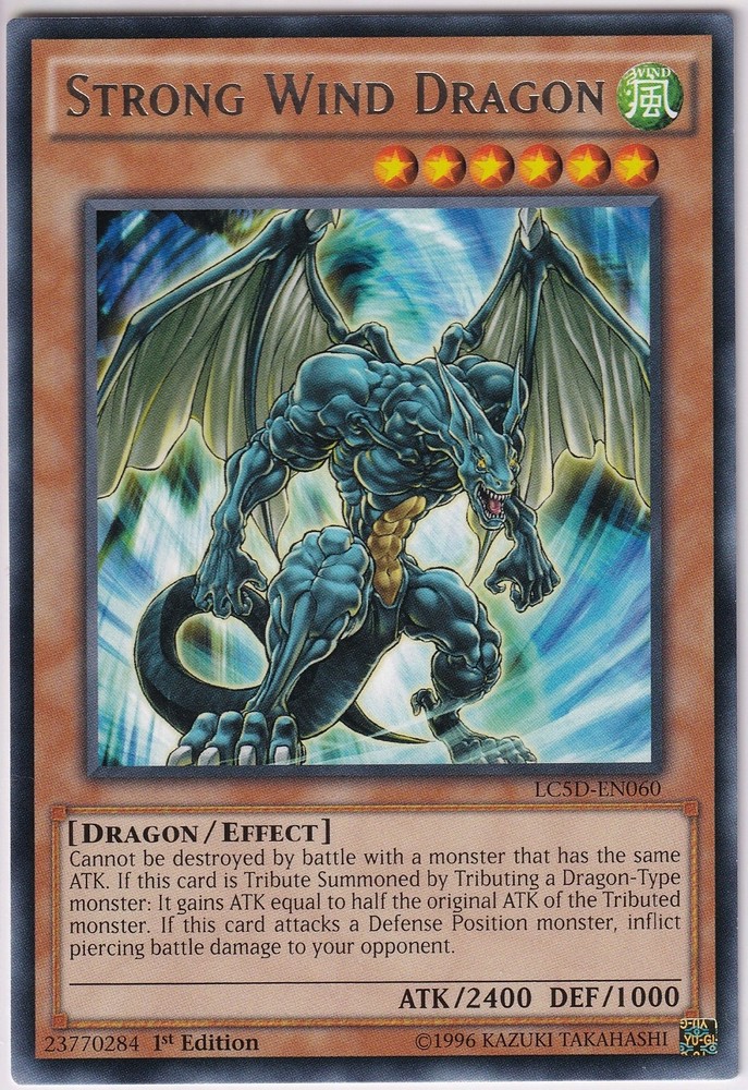 Elevate your Yu-Gi-Oh! TCG collection with the Strong Wind Dragon from the Legendary Collection 5D's set. As a coveted Effect-type monster, this card boasts an impressive 2400 Attack/Power and 1000 Defense/Toughness, ready to dominate the battlefield. Its unique abilities make it a strategic asset in gameplay, captivating the attention of both seasoned players and collectors alike. The Strong Wind Dragon, with card number LCD5 EN060, is a 1st Edition rarity that speaks to its value and collectibility. Produced by the renowned Konami and adhering to the standard card size, it features English text and is crafted in Belgium, a testament to its quality. Don't miss the chance to own this pivotal piece of the Yu-Gi-Oh! universe. The card shown is the card you will receive. Any questions or clarifications you may have about the card, please feel free to ask.