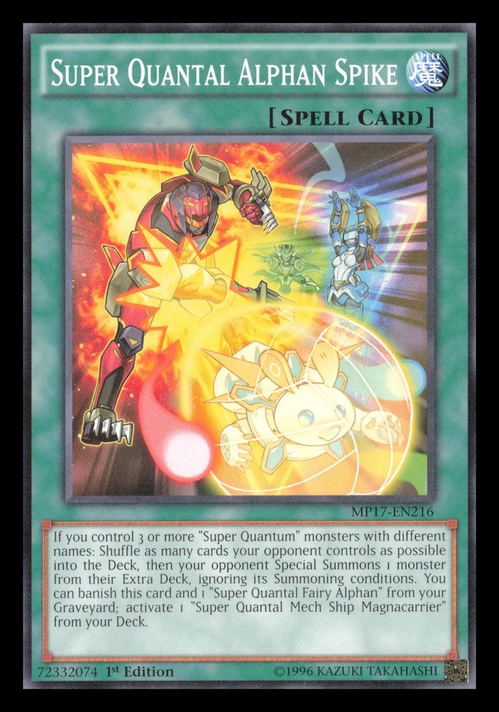 The item being listed is described in the title above along with a description below. An actual or scanned photo is also included in this listing reflecting the item and condition in which you are purchasing/bidding on! Please note all my items are in Mint Condition unless noted otherwise. Some scans/photos may show scratches or defects on the cards listed due to them being scanned/photographed with a protectant case such as but not limited to; top loaders. Feel free to contact us for further details of the condition or if additional photos are needed, we'll will be more than happy to send them to you! Description: Super Quantal Alphan Spike 2017 Mega-Tins Mega Pack #MP17-EN216 Other important information about this card: In 0 Super Quantal Alphan Spike played for the . In order to keep Shipping Costs Low Orders under $20 will ship for $1.25 cents using the Ebay Standard Plain White Envelope program with eBay Tracking #included. If you wish for a Bubble Mailer with Tracking please make the request for the bubble mailer, the cost will be $4.20. PLEASE BE SURE TO CHECK OUT OUR OTHER LISTINGS FOR MORE GREAT CARDS! Track Page Views With Auctiva's Counter