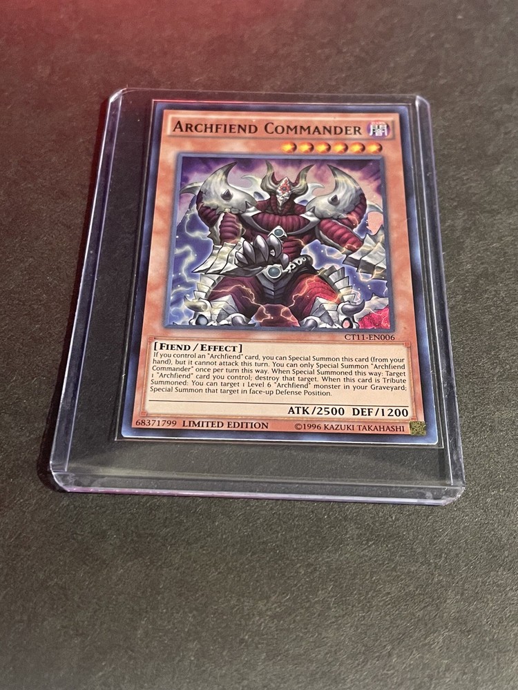 This Archfiend Commander card is a powerhouse with 2500 ATK and 1200 DEF—perfect for any serious duelist. The limited edition CT11-EN005 from the 2014 Mega-Tin looks amazing with its dark, menacing artwork. A fantastic pull for collectors and players alike, adding serious firepower to Fiend decks. Highly recommended!