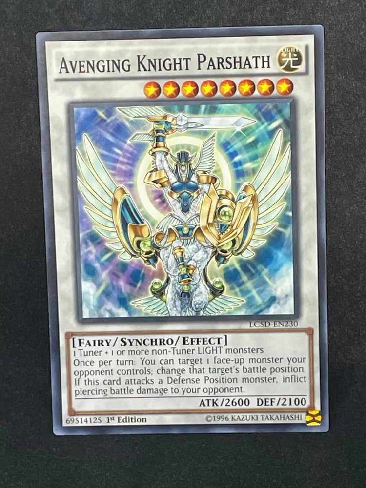 Welcome to our store We want to make sure customers are happy with their purchase , please be sure to carefully look at the state of the card in the pictures or reach out and ask additional information/ photos of any cards that you're interested in. We strive on happy consumers and giving satisfactory customer service. The cards vary from moderately played to near mint with a majority being in the lightly played area. Please do not hesitate to ask questions. Shipping All cards are shipped in a sleeve and top loader , between 2 sheets of cardboards held with rubber bands and in a bubble envelope mailer to assure protection from damage. Ebay Standard Envelope can not be put in between cardboard and will be shipped at your own risk with less protection . If a much larger amount of cards is purchased we ship your purchase in a box fitting to the amount with bubble wrap/tissue paper for protection. Dive into the strategic depths of the Yu-Gi-Oh! TCG with the Avenging Knight Parshath from the Legendary Collection 5D's set. As a 1st Edition Synchro card, the Avenging Knight Parshath is a must-have for collectors and players alike, featuring the unique card number LC5D-EN230. With an attack power of 2600 and a defense toughness of 2100, this Fairy-type creature stands ready to bolster your deck. The card's attributes, including its Light color, enhance its gameplay experience, offering a blend of offense and defense that can turn the tides in your favor. Whether you're looking to expand your collection or power up your competitive edge, the Avenging Knight Parshath is an essential addition to any Yu-Gi-Oh! TCG arsenal.