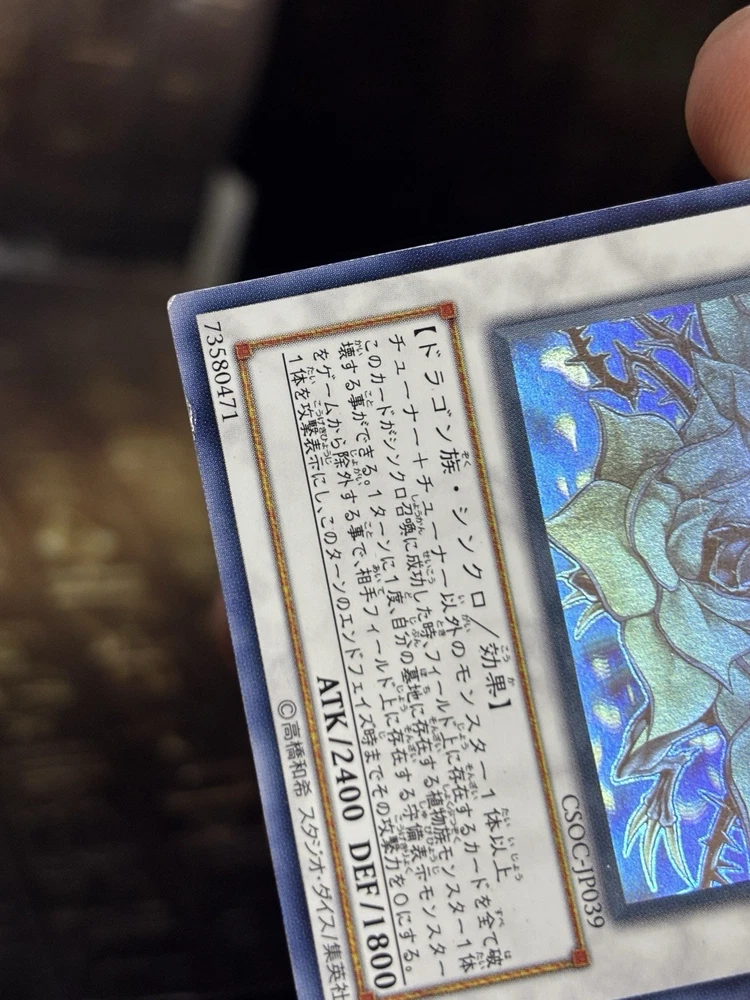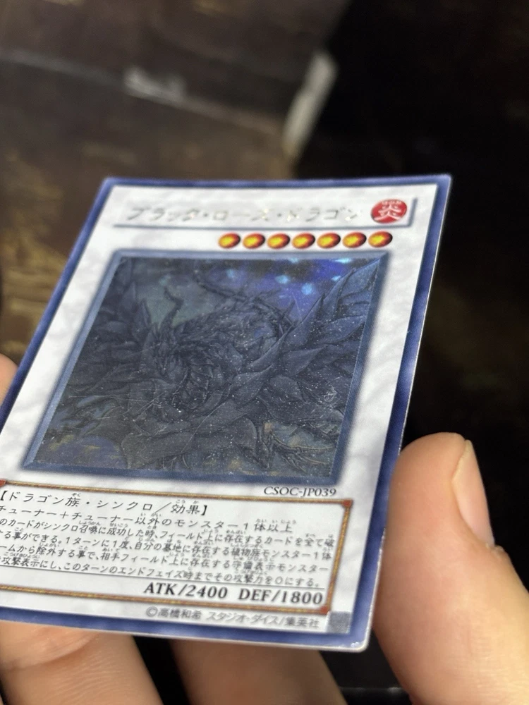 Absolutely stunning card! The ghost rare finish makes Black Rose Dragon shine with an otherworldly shimmer. The Japanese text adds an authentic collector’s touch, and the CSOC-JP039 rarity makes it a must-have for any Yu-Gi-Oh! enthusiast. Perfect condition, looks even better in person—definitely worth adding to your deck or display!