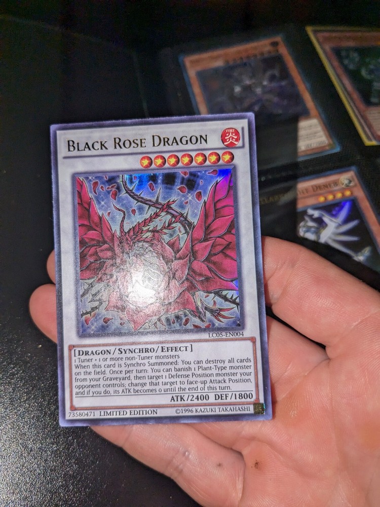 This limited edition Yu-Gi-Oh! TCG card features the powerful Black Rose Dragon, with 2400 attack and 1800 defense. The card is part of the Legendary Collection 5D's set and has the card number LC05-EN004. It is a synchro/effect card with the attribute of Fire and the creature type of Dragon. This ultra rare card is perfect for collectors and players of the Yu-Gi-Oh! TCG game. Its features include a limited edition design and its rarity makes it a highly sought after addition to any collection. Add this card to your deck or display it proudly in your collection.