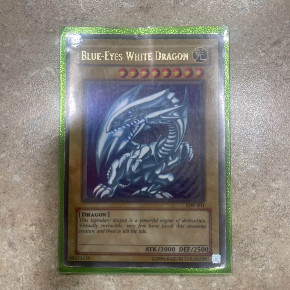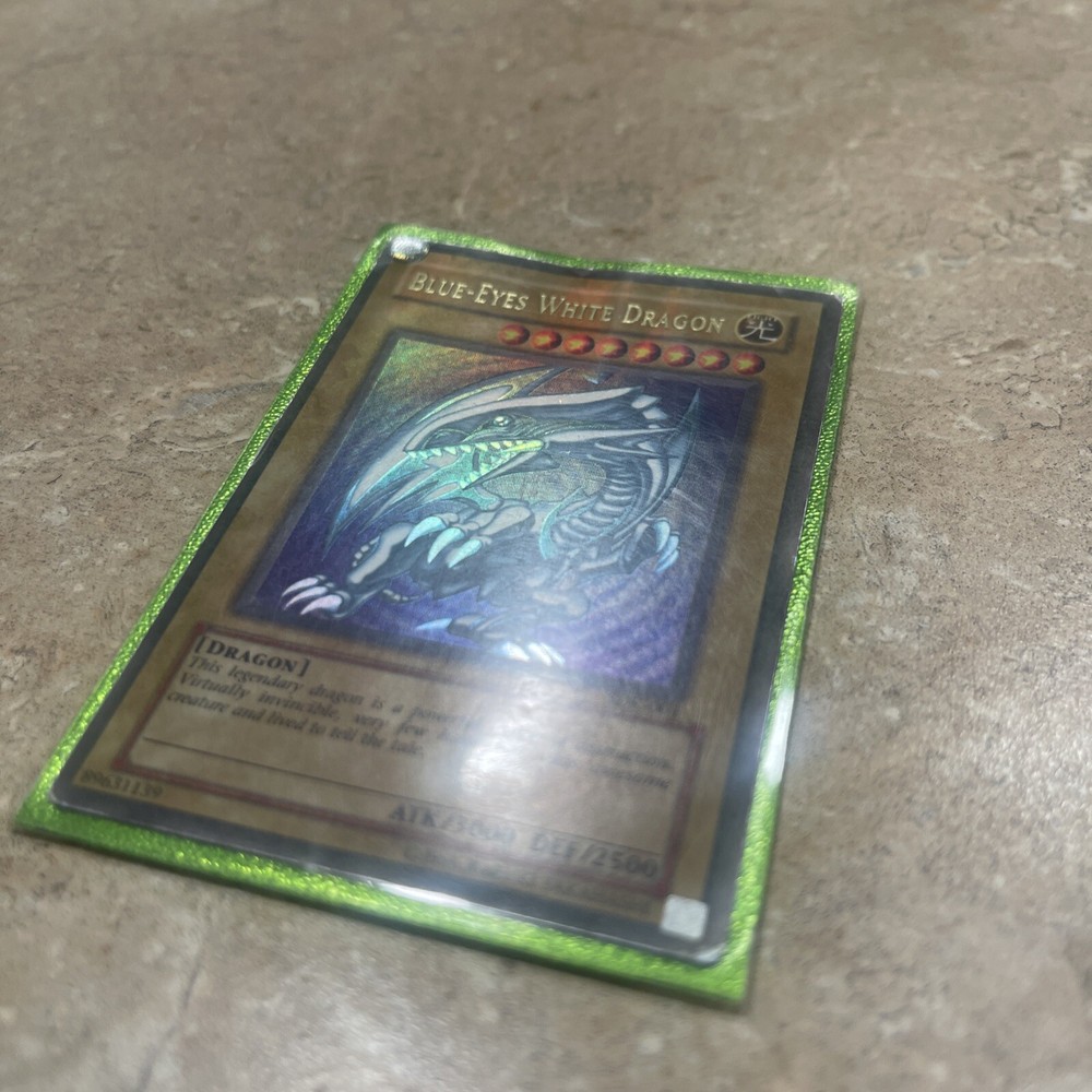Up for sale is a highly sought after Yu-Gi-Oh! trading card game card, the Blue-Eyes White Dragon (Version 2) from the Legendary Collection Kaiba set. This Ultra Rare card boasts an impressive Attack/Power of 3000 and a Defense/Toughness of 2500. It also features the iconic 1st Edition stamp, making it a must-have for any collector. This card is in excellent condition and has been kept in a protective sleeve since it was first acquired. It is perfect for adding to a collection or for use in competitive play. Don't miss out on the opportunity to own this amazing card!