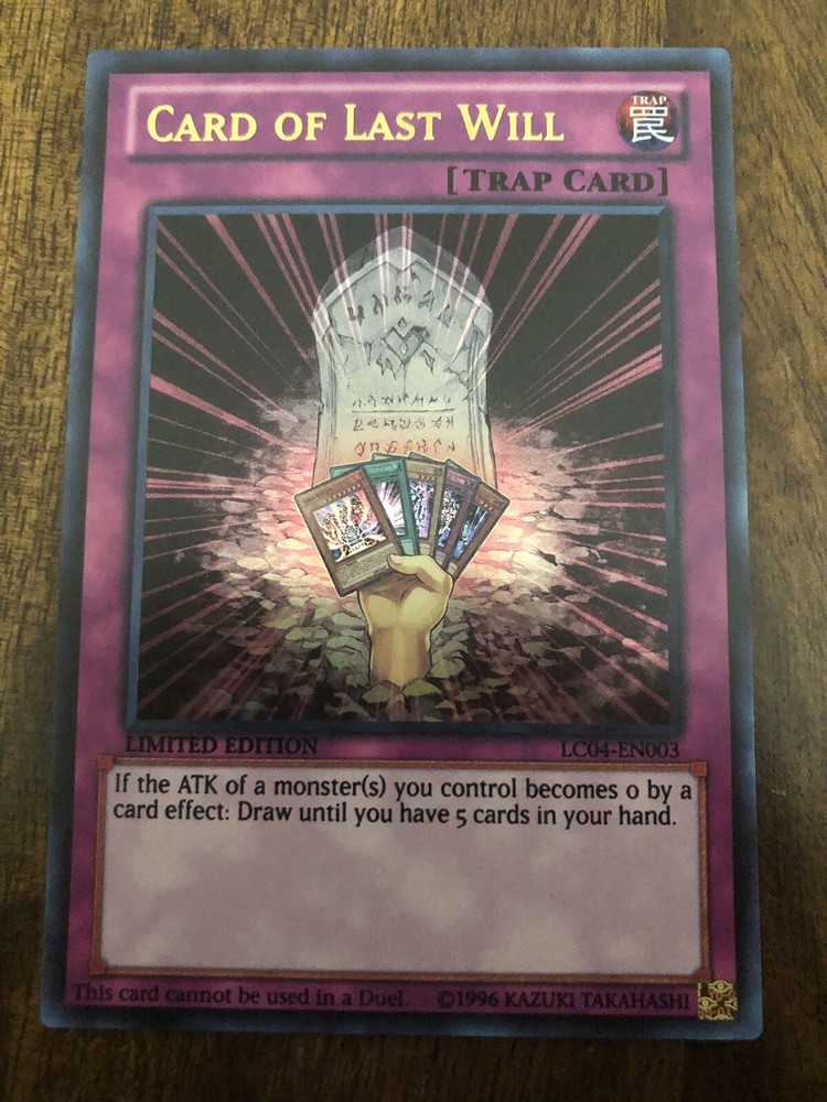 Card of Last Will NM Limited Edition Ultra Rare from Legendary Collection 4: Joey’s World. All cards are pack fresh unless otherwise specified. All cards are in a poly sleeve and top loader. Standard shipping. All cards are shipped in a poly sleeve, top loader, and team bag.