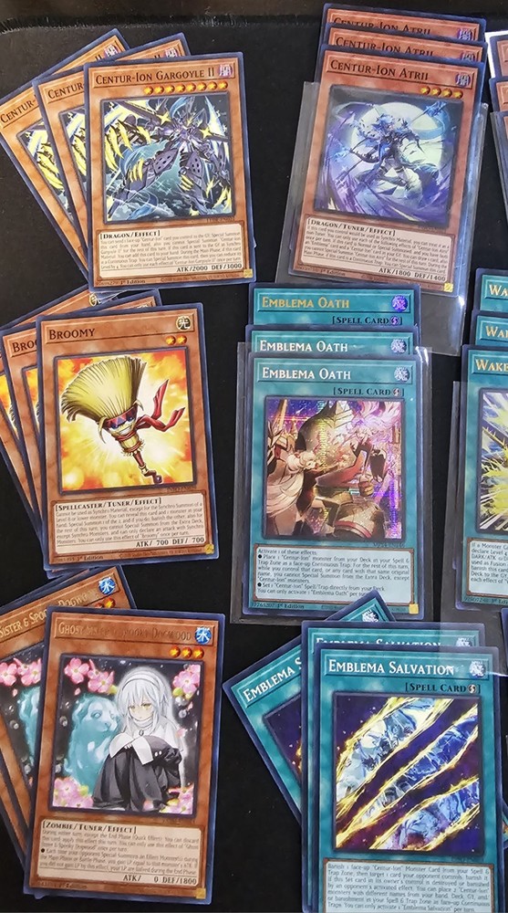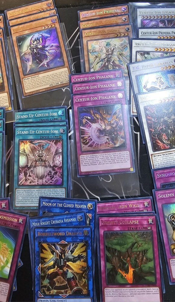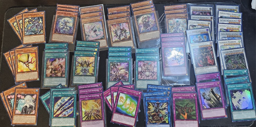 Yu-Gi-Oh! Trading Card Game (English) Centur-Ion Core (LED8 VASM INFO LEDE ROTA DUNE MAZE BLC1 RA02) 68x Card Deck: (53x main + 15 extra deck cards) Centur-Ion Gargoyle II 3x Centur-Ion Atrii 3x Centur-Ion Trudea 3x 3x Centur-Ion Emeth VI 3x Centur-Ion Chimerea 3x Centur-Ion Primera 3x Broomy 3x Ghost Sister & Spooky Dogwood 3x Emblema Oath 3x Wake Up Centur-Ion 3x Centur-Ion Bonds 3x Stand Up Centur-Ion 3x Emblema Salvation 3x Centur-Ion True Awakening 3x Synchro Transmission 3x Imperial Iron Wall Imperial Custom 1x Gravity Collapse 1x Synchro Zone 1x Solemn Judgment 1x Terraforming 1x Don't Slip, the Dogs of War 1x Duelist Genesis 1x Moon of the Closed Heaven 1x Mekk-Knight Crusadia Avramax 1x Borrelsword Dragon 1x Centur-Ion Legatia 1x Centuri-Ion Auxila 1x Centur-Ion Primera Primus 1x Ancient Fairy Dragon 1x T.G. Hyper Library 1x Draco Berserker of the Tenyi 1x Stardust Assault Warrior 1x Gaia Blaze, the Force of the Sun 1x Hi-Speedroid Kitedrake 1x Trishula, Dragon of the Ice Barrier 1x Stardust Warrior 1x Psychic End Punisher 1x Ungraded. What you see is what you get. Can combine shipping for multiple orders. No returns.