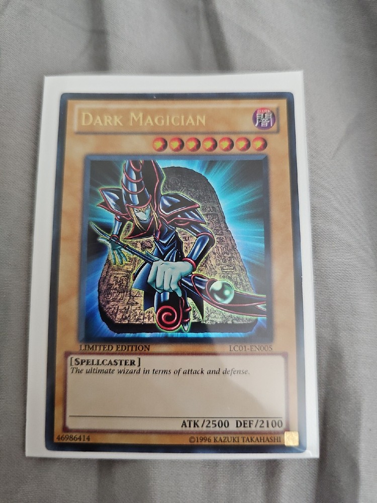 This Yu-Gi-Oh! TCG card is a highly sought-after Dark Magician from the Legendary Collection set. This limited edition Ultra Rare card boasts a powerful Attack/Power of 2500 and a sturdy Defense/Toughness of 2100, making it a valuable addition to any collection. The card features the Creature/Monster Type of Spellcaster and the Attribute/MTG:Color of Dark, which further enhances its rarity. The Dark Magician card is perfect for fans of the Yu-Gi-Oh! TCG looking to expand their collection. With its impressive stats and limited edition status, it's sure to be a hit with collectors and players alike. Don't miss out on the chance to add this highly coveted card to your collection!
