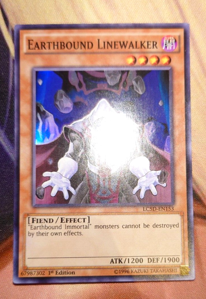 This is a Yu-Gi-Oh! TCG card of the Earthbound Linewalker, from the Legendary Collection 5D's set. It features an Attack/Power of 1200 and a Defence/Toughness of 1900, with a card number of Lc5d-En153. This card is a Super Rare Effect type, with a Creature/Monster Type of Fiend and a Colour of Dark. It also has a 1st Edition feature and belongs to the CCG Individual Cards and Collectable Card Games categories. This card is perfect for any Yu-Gi-Oh! TCG collector or player looking for a unique and powerful addition to their deck.