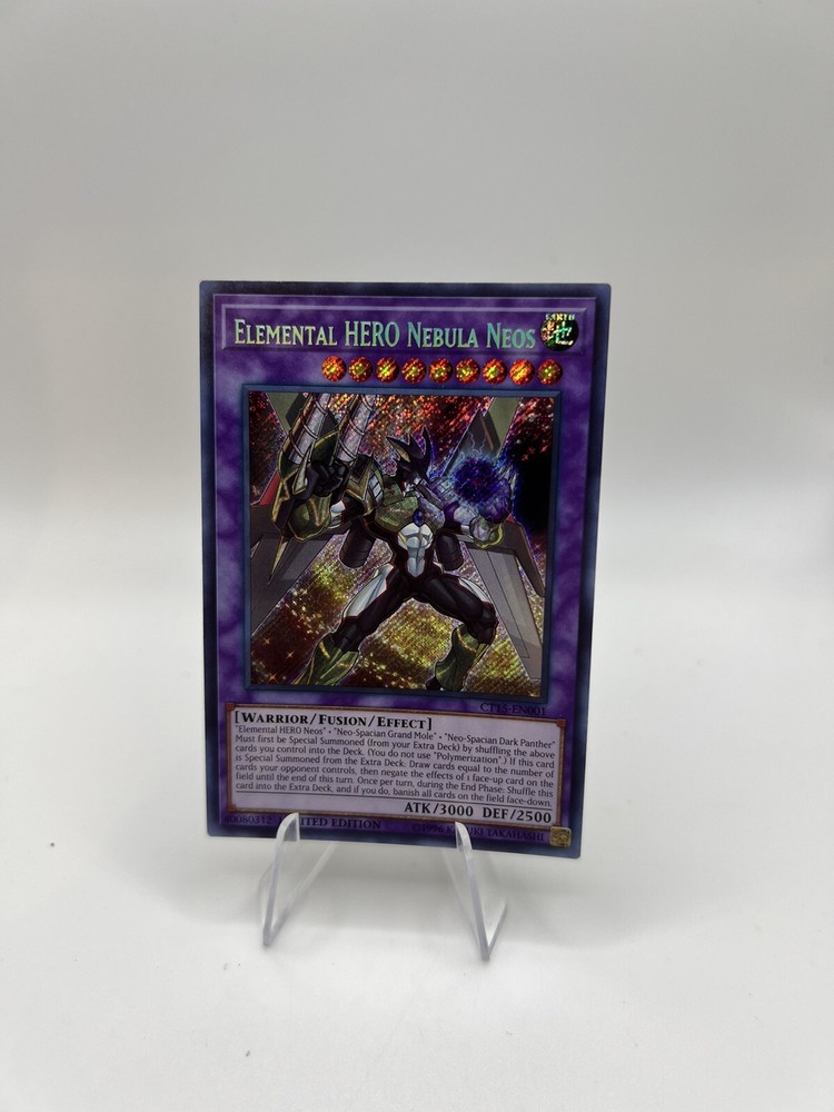 This limited edition Yu-Gi-Oh! TCG card is a must-have for any fan of the game. The Elemental HERO Nebula Neos card features a powerful 3000 attack power and 2500 defense/toughness. It belongs to the 2018 Mega-Tins Promos set and has the card number Ct15-En001. This Effectfusion Monster card represents the Warrior creature/monster type and is Earth in color. Whether you're a seasoned collector or just starting out, this card is a valuable addition to any collection. Don't miss your chance to own this rare card.