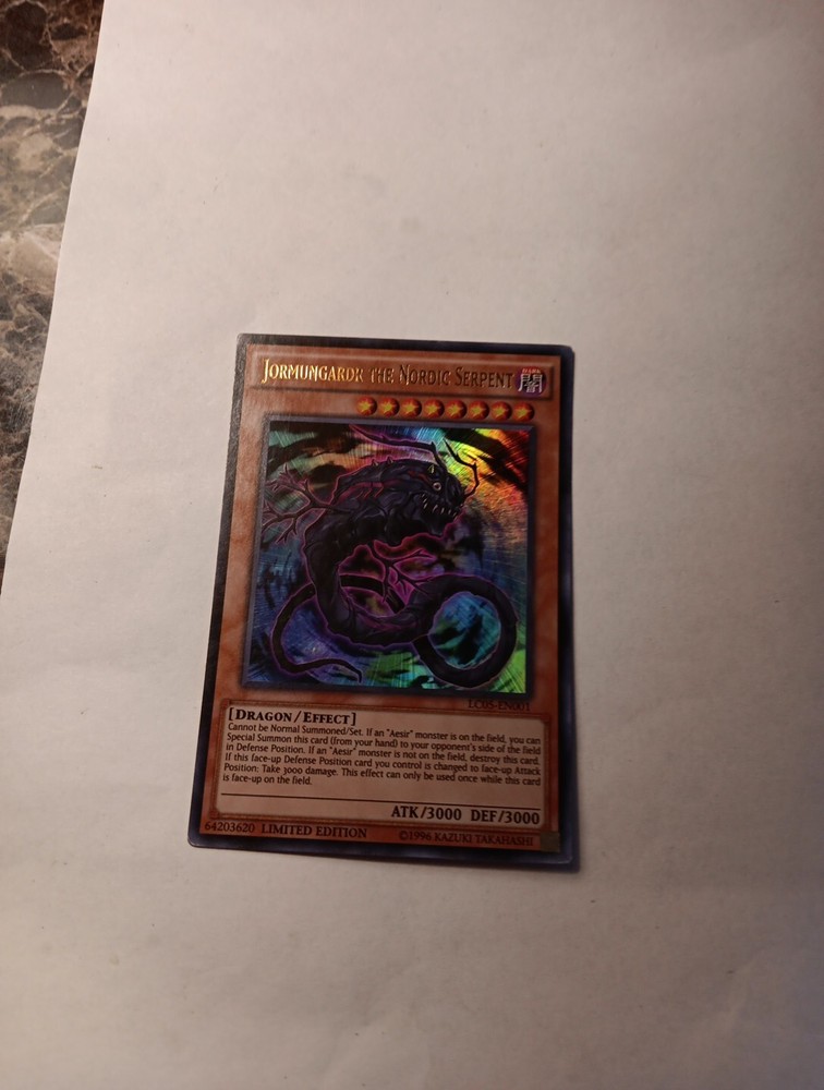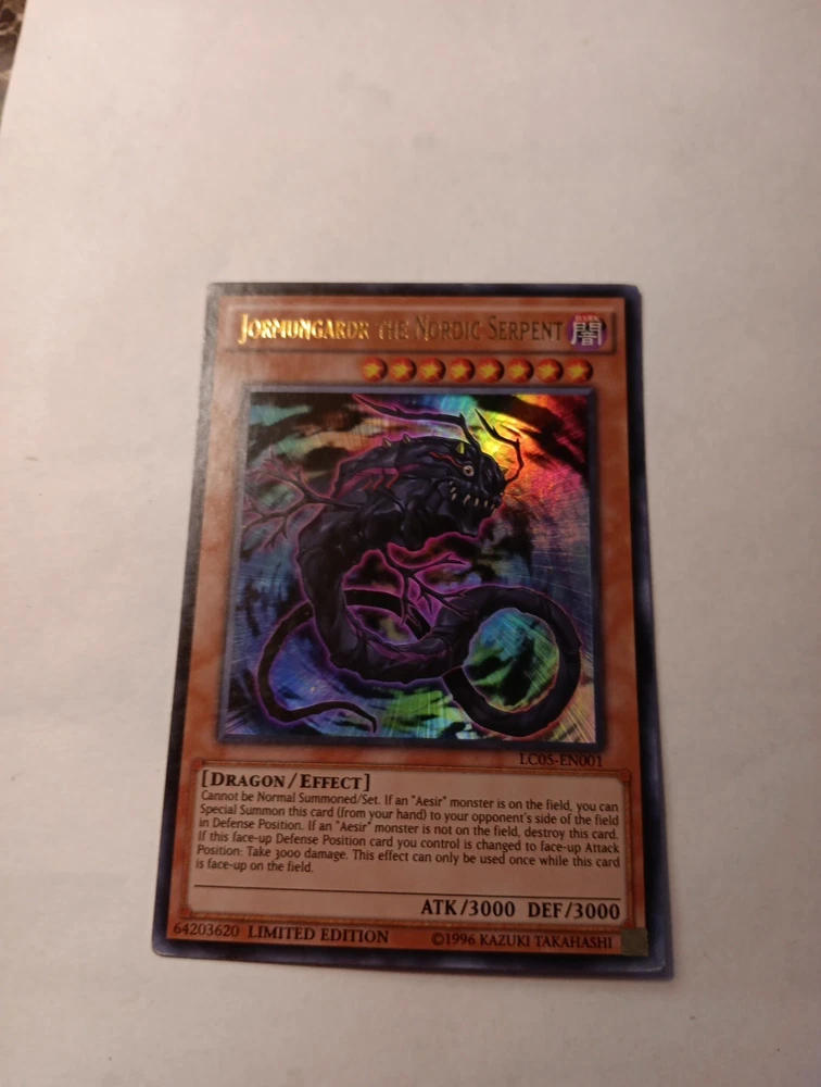This Yu-Gi-Oh! TCG card is a must-have for any collector or player. With its ultra rare rarity and limited edition features, Jormungardr the Nordic Serpent is a powerful addition to any deck. The card is an effect type and belongs to the Dragon creature/monster type. It has a card number of LC05-EN001 and belongs to the 5D's set. The card has a defense/toughness of 3000 and an attack/power of 3000. It is colored dark and has a card type of Ultra Rare. This card is perfect for anyone who wants to add a unique and powerful card to their collection.