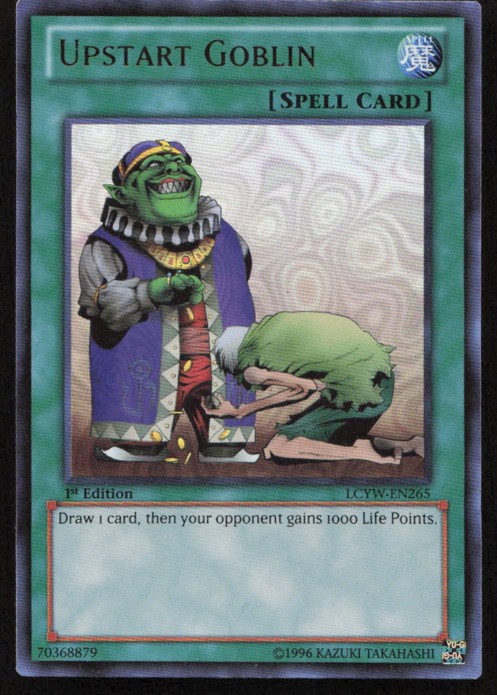 This Upstart Goblin is a fantastic addition to any Yu-Gi-Oh collection! The 1st Edition Ultra Rare print looks sharp, and the condition is solid for its age. The seller provides actual scans, so you know exactly what you're getting—no surprises. Shipping is affordable, and they offer a great selection of TCGs. Highly recommend for collectors or players needing this classic card!