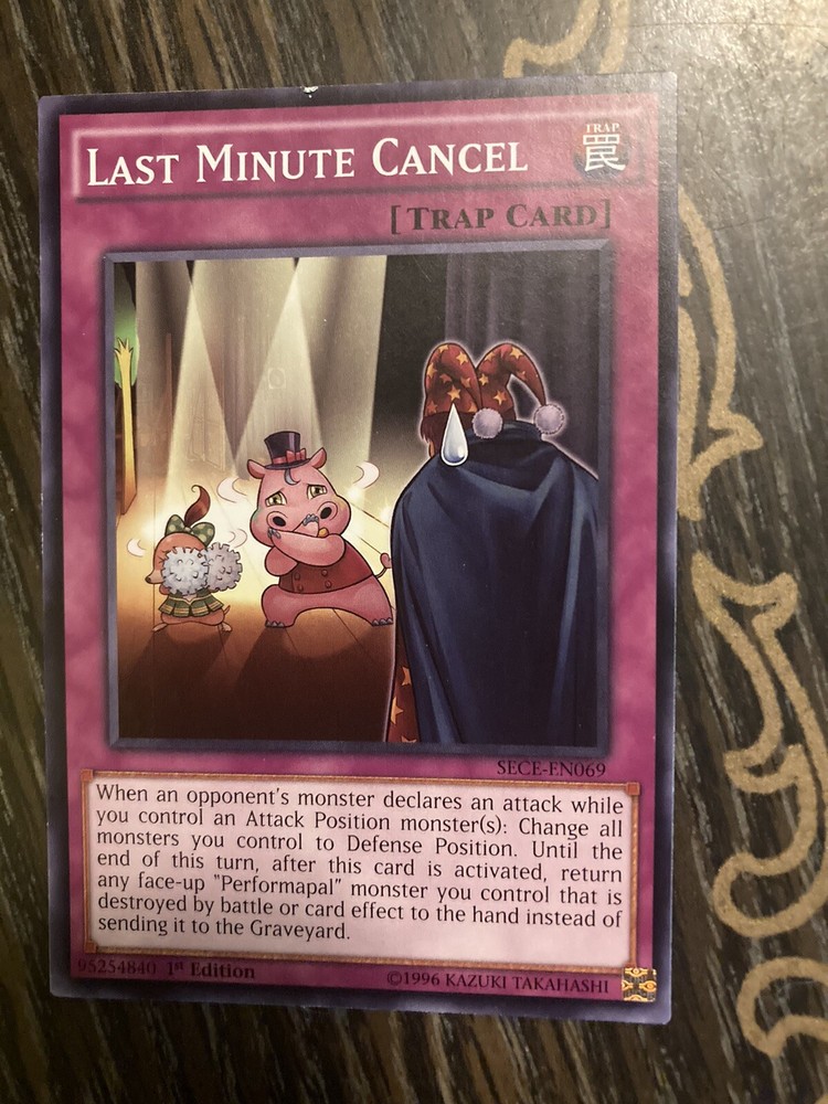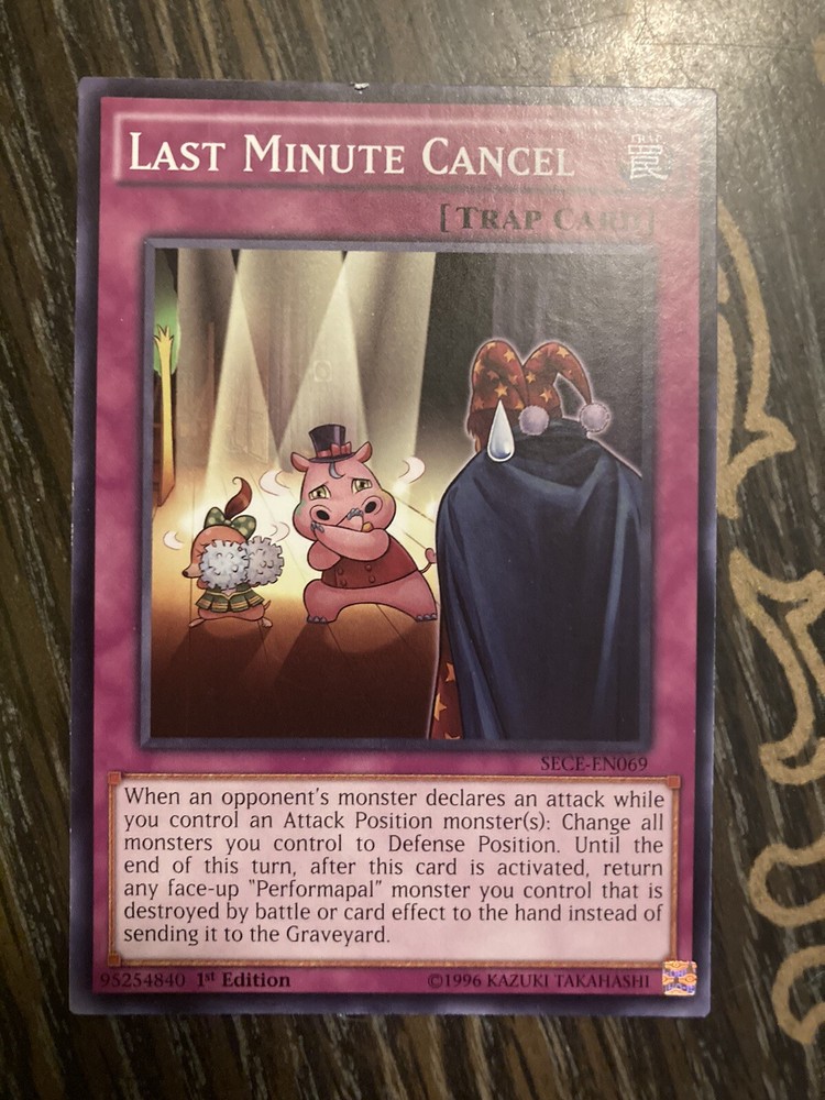 Yu-Gi-Oh! TCG Last Minute Cancel is a Trap card made of card stock material. It belongs to the 2018 Mega Tin Pack set and was manufactured by Konami. The card is a 1st Edition and has a regular finish. Its card number is MP15-EN238. The Last Minute Cancel card is a common rarity and is written in English. It is a Normal Trap card that features the Trap attribute and character type. It is suitable for ages 6 and up and is part of the Yu-Gi-Oh! TCG game.