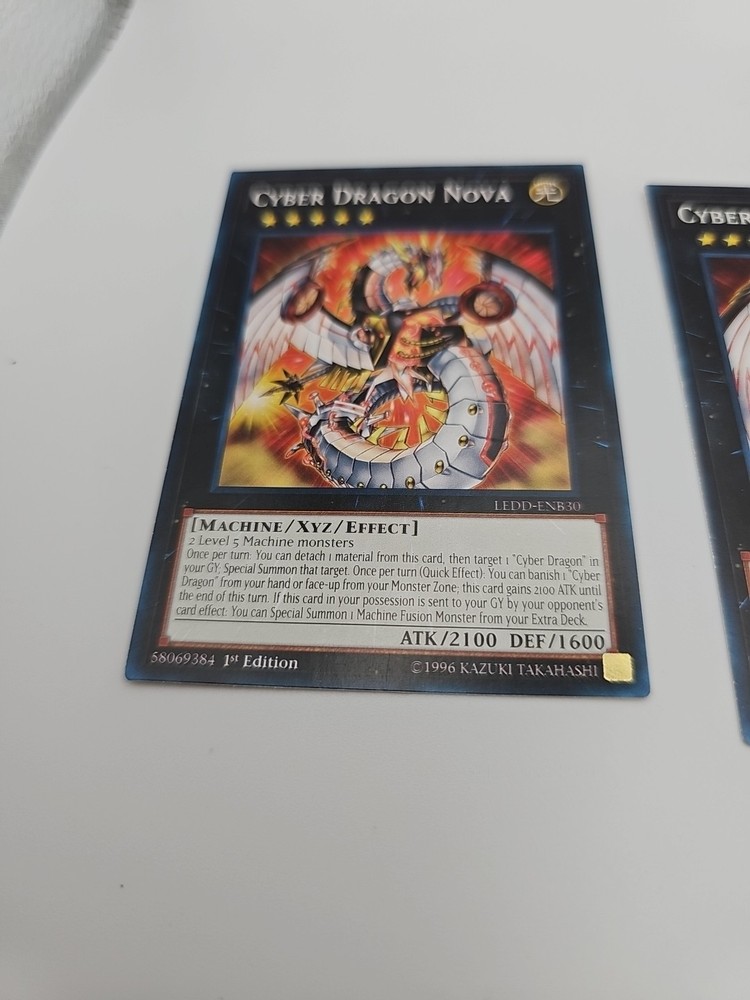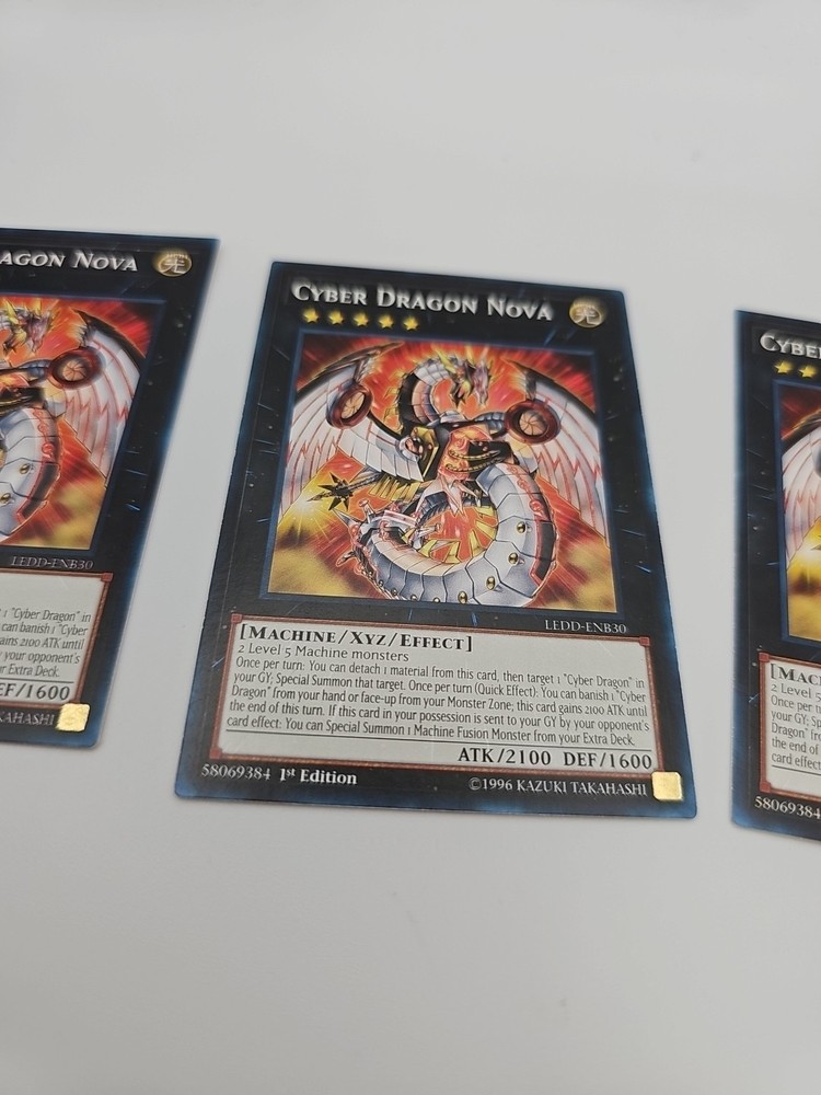 The Yu-Gi-Oh! TCG Legendary Dragon Decks Cyber Dragon Nova #LEDD-ENB30 1st Ed. X3 is a highly sought-after collectible card game item featuring the popular Cyber Dragon Nova character. Manufactured by Konami in 2017, these cards are part of the Legendary Dragon Decks set and are considered 1st Edition, adding to their rarity and value. With card numbers LEDD-ENB30, these cards are a must-have for any fan of the Yu-Gi-Oh! TCG and collectors of CCG individual cards.