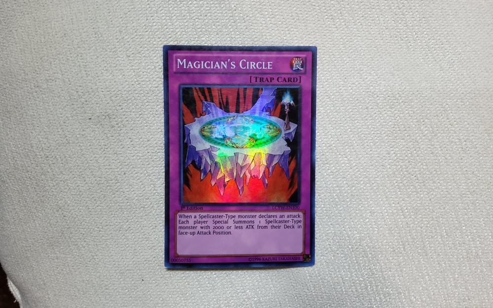 This is a highly sought-after Yu-Gi-Oh! TCG card from the Legendary Collection 3: Yugi's World set. The Magician's Circle card is a Super Rare trap-normal card with the card number LCYW-EN100. It features Yugi's World archetype and is a 1st Edition card. This card is perfect for collectors and players alike, and is sure to be a valuable addition to any collection.