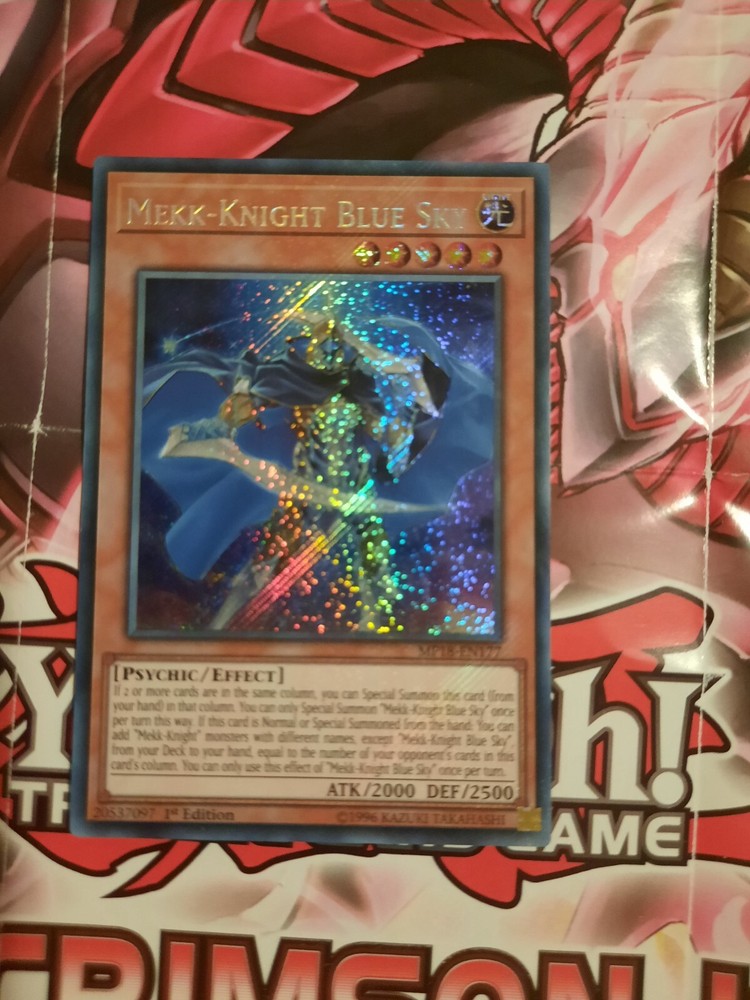 This amazing Yu-Gi-Oh! TCG card features the powerful Mekk-Knight Blue Sky with 2000 attack and 2500 defense. It is a secret rare card from the 2018 Mega-Tin Mega Pack set, with card number MP18-EN177. This card is made of high-quality card stock material and is in standard size. The card is an effect type and belongs to the psychic monster type. It is a 1st edition card with English language. The card is not autographed and is suitable for ages 6 and up. This is a must-have card for any Yu-Gi-Oh! TCG collector or player.