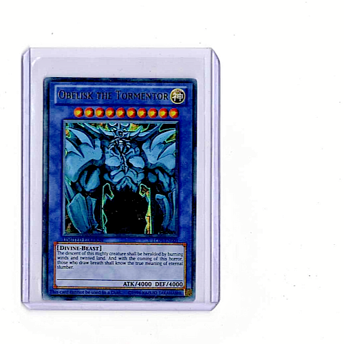 Brand new limited edition Obelisk the Tormentor normal card with holo finish from Konami. The card has a standard size and is printed on high-quality card stock. It is a part of the Yu-Gi-Oh! Trading Card Game and is ultra-rare. The divine-beast creature card has an attack power of 4000 and a defense toughness of 4000. The card is in English language and was manufactured in the United States. Perfect for enthusiastic Yu-Gi-Oh collectors!